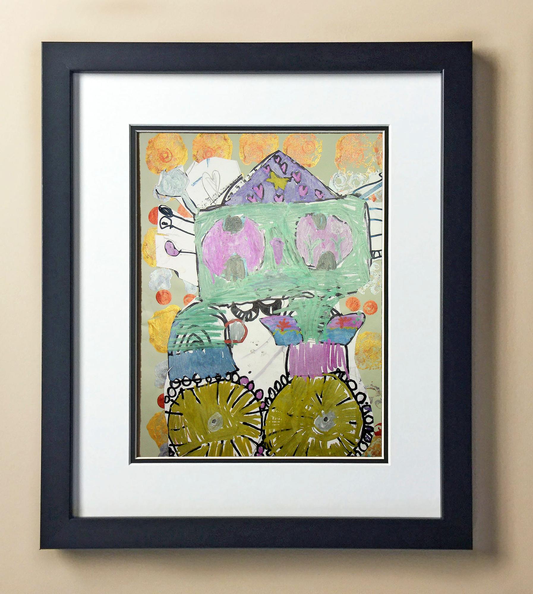 Included with the purchase is the Students Artwork, Frame, double matboard, shatter proof plexiglass, and a ready to hang backerboard with turnbuttons