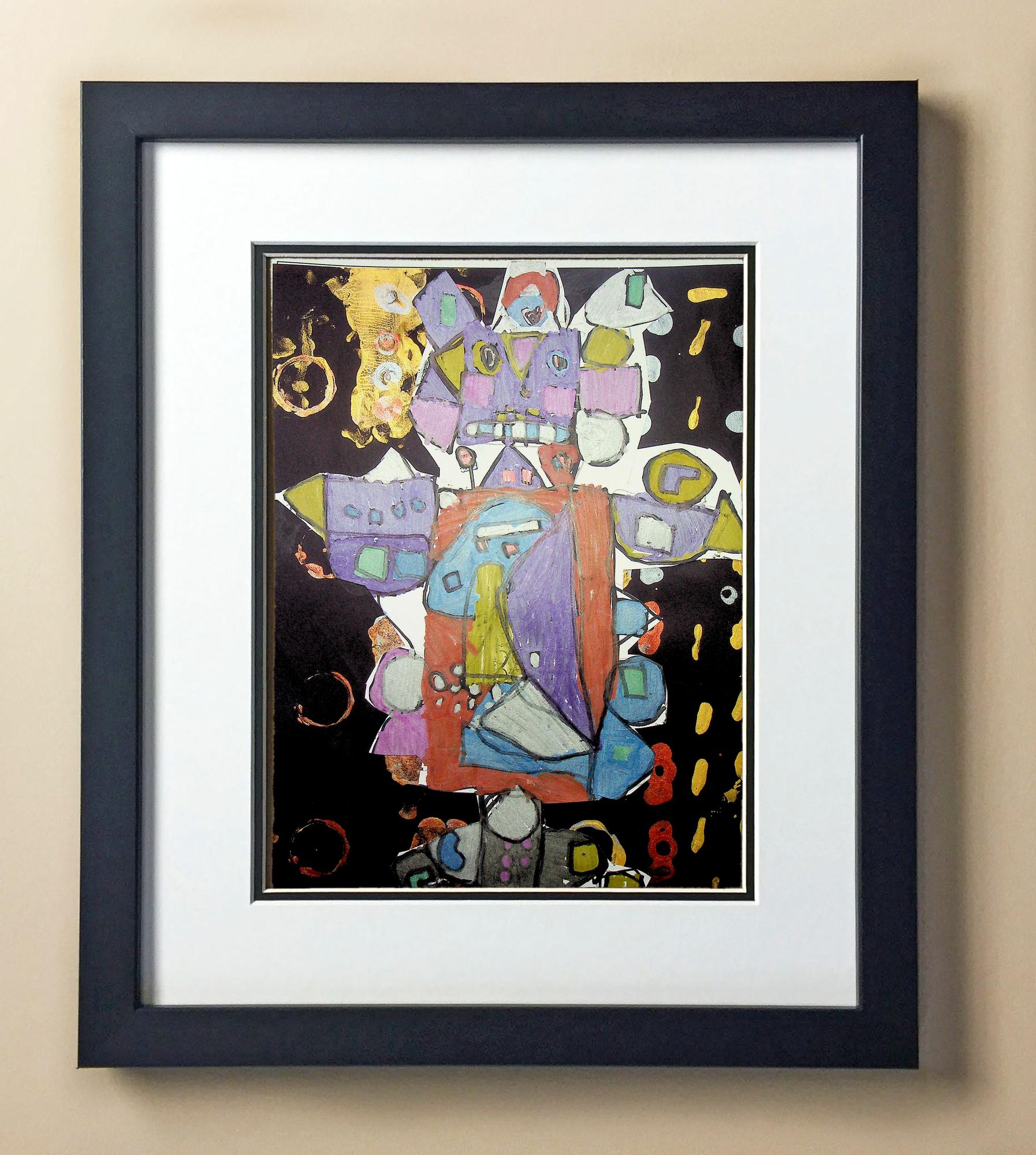 Included with the purchase is the Students Artwork, Frame, double matboard, shatter proof plexiglass, and a ready to hang backerboard with turnbuttons