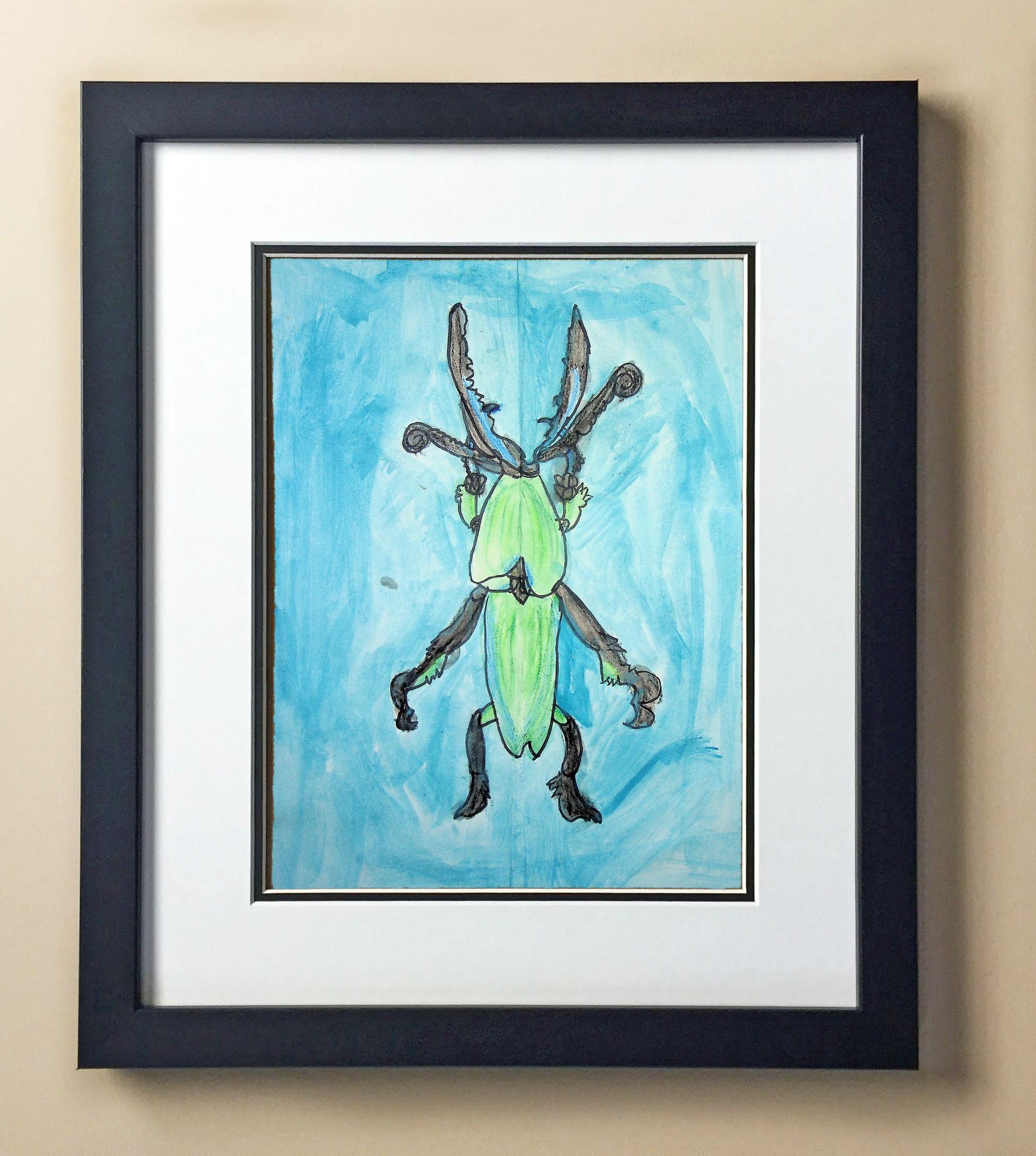 Included with the purchase is the Students Artwork, Frame, double matboard, shatter proof plexiglass, and a ready to hang backerboard with turnbuttons