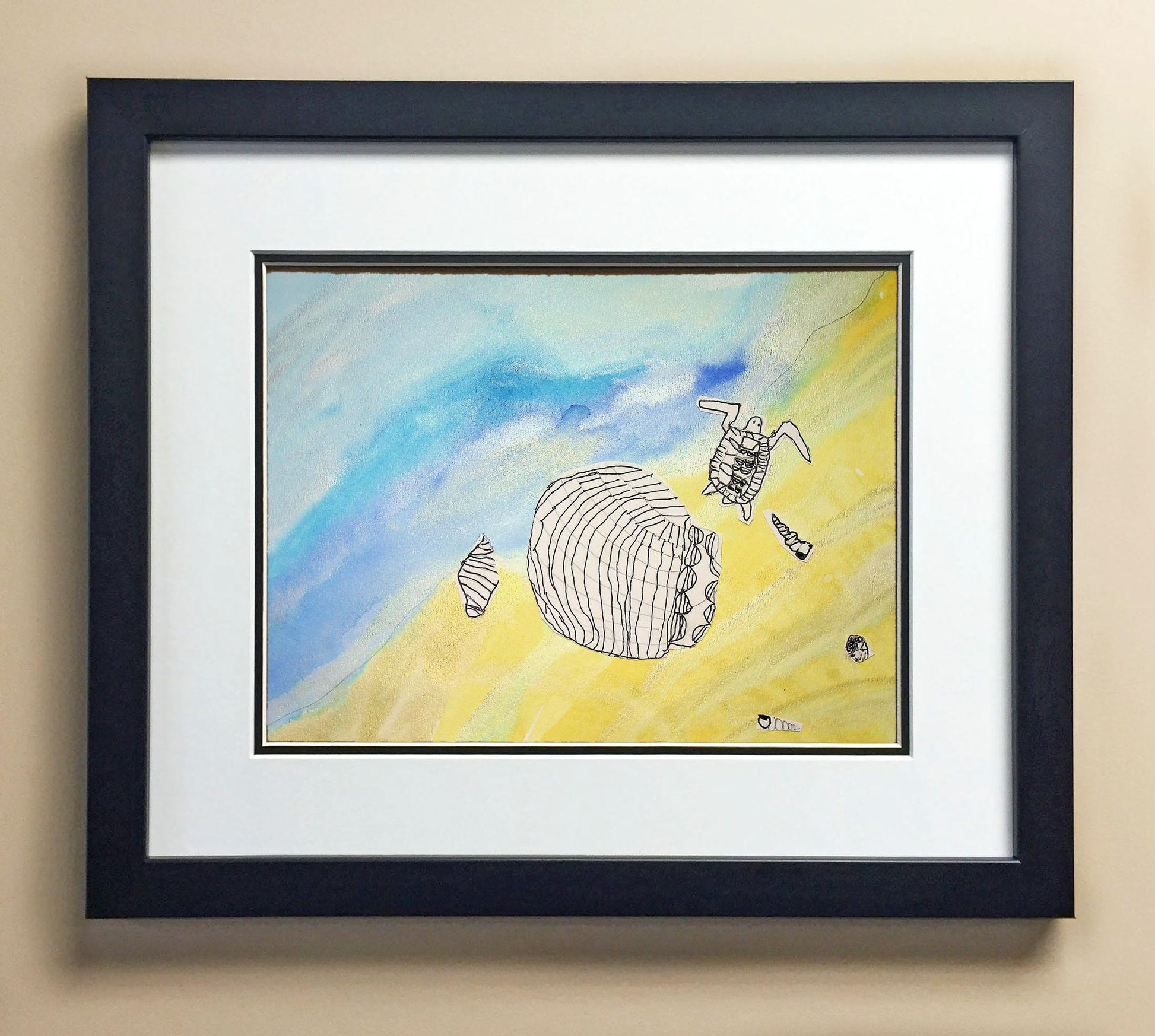 Included with the purchase is the Students Artwork, Frame, double matboard, shatter proof plexiglass, and a ready to hang backerboard with turnbuttons