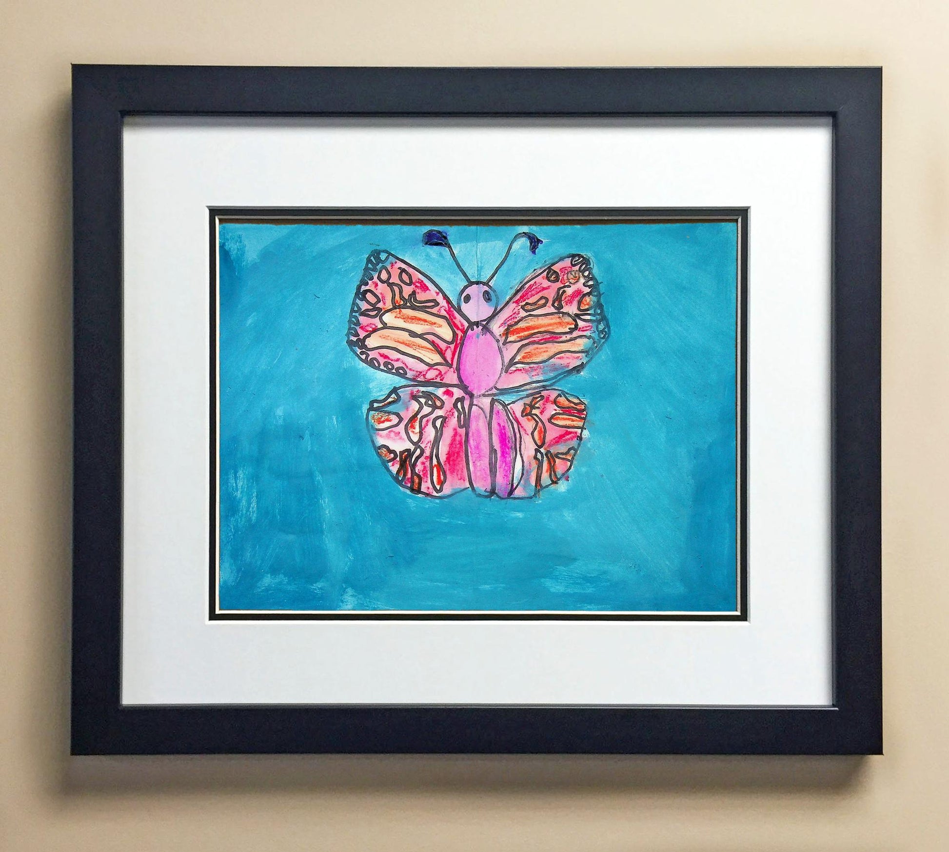 Included with the purchase is the Students Artwork, Frame, double matboard, shatter proof plexiglass, and a ready to hang backerboard with turnbuttons