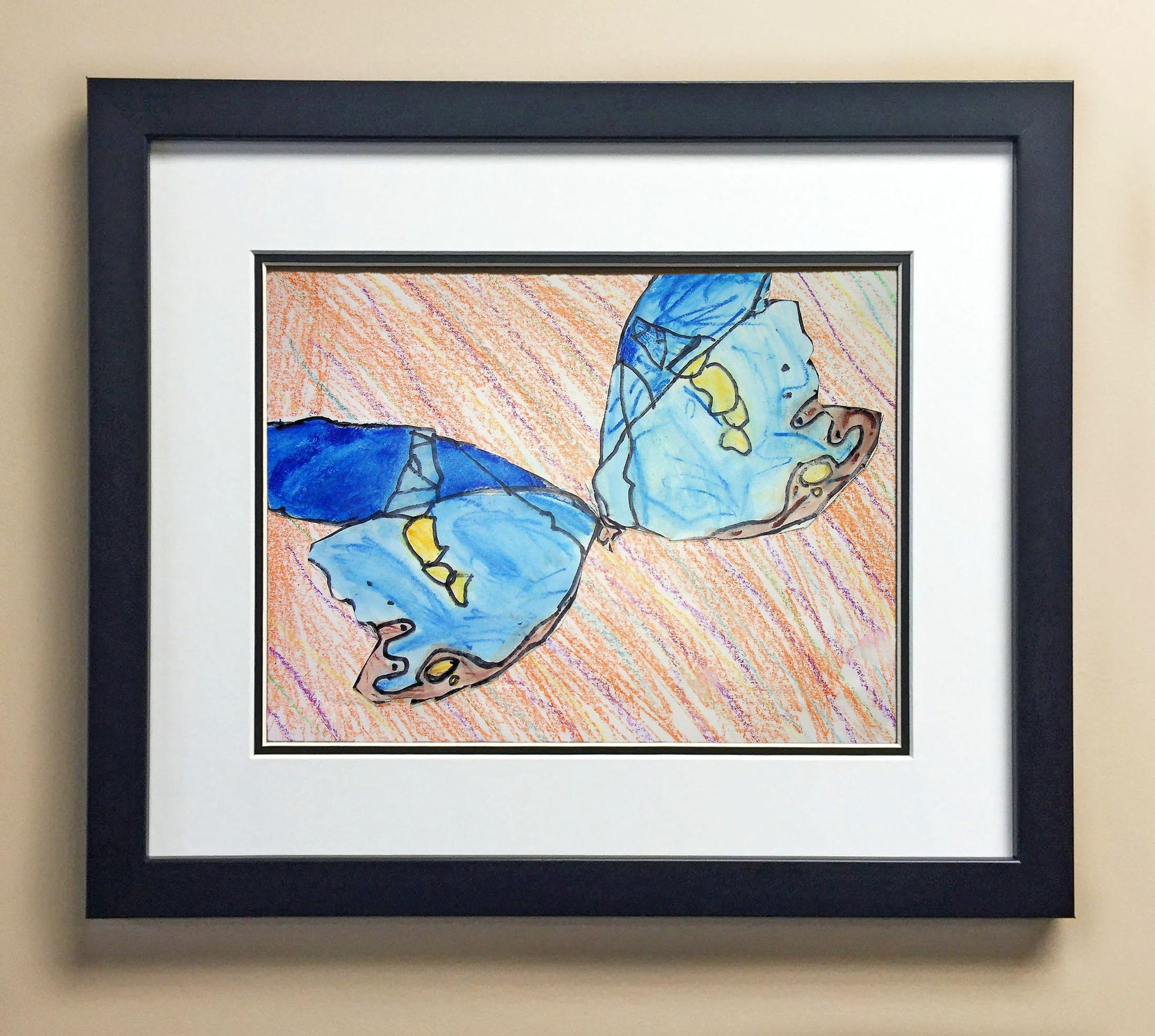 Included with the purchase is the Students Artwork, Frame, double matboard, shatter proof plexiglass, and a ready to hang backerboard with turnbuttons