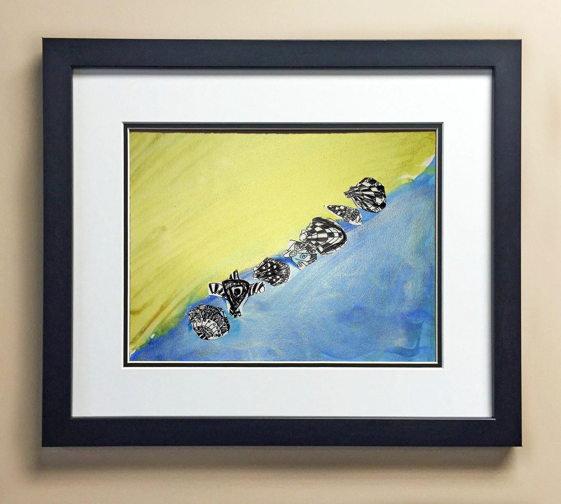 Included with the purchase is the Students Artwork, Frame, double matboard, shatter proof plexiglass, and a ready to hang backerboard with turnbuttons