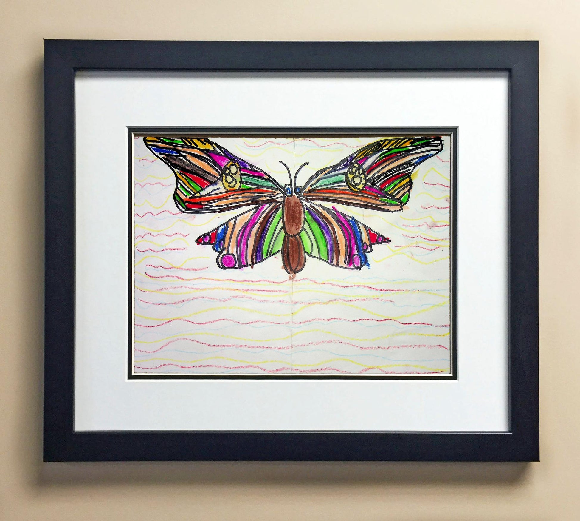 Included with the purchase is the Students Artwork, Frame, double matboard, shatter proof plexiglass, and a ready to hang backerboard with turnbuttons