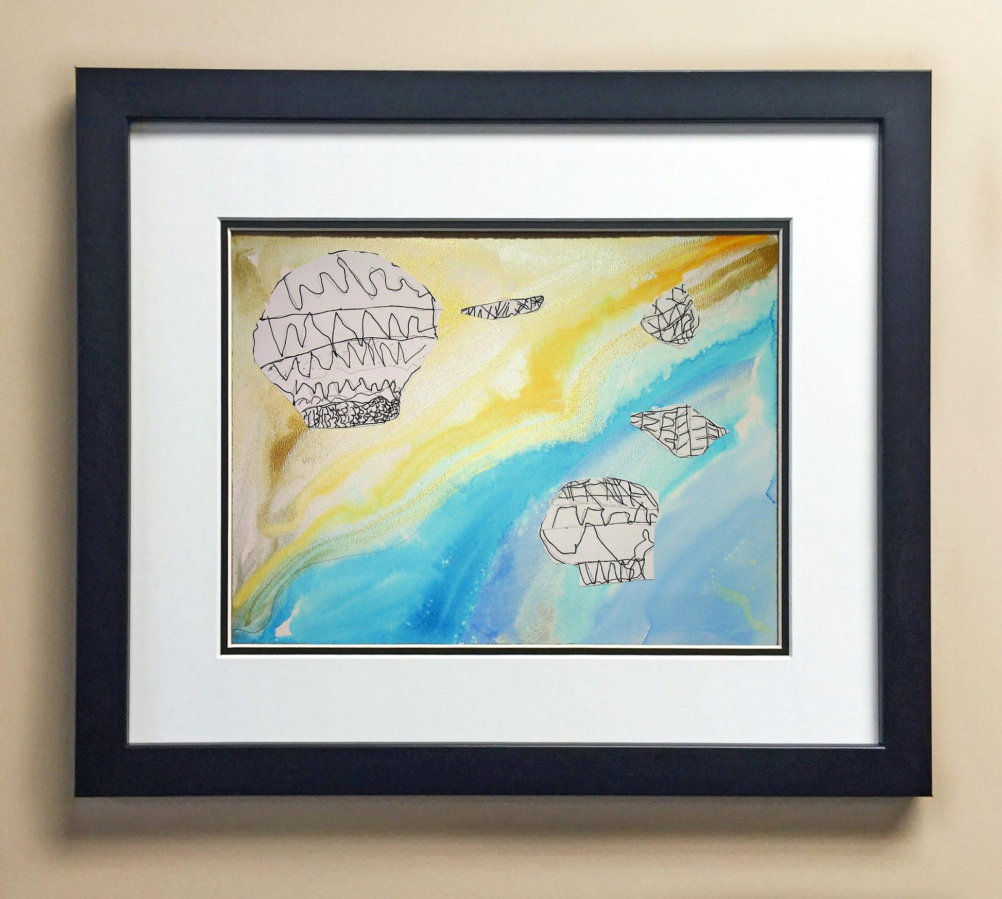 Included with the purchase is the Students Artwork, Frame, double matboard, shatter proof plexiglass, and a ready to hang backerboard with turnbuttons