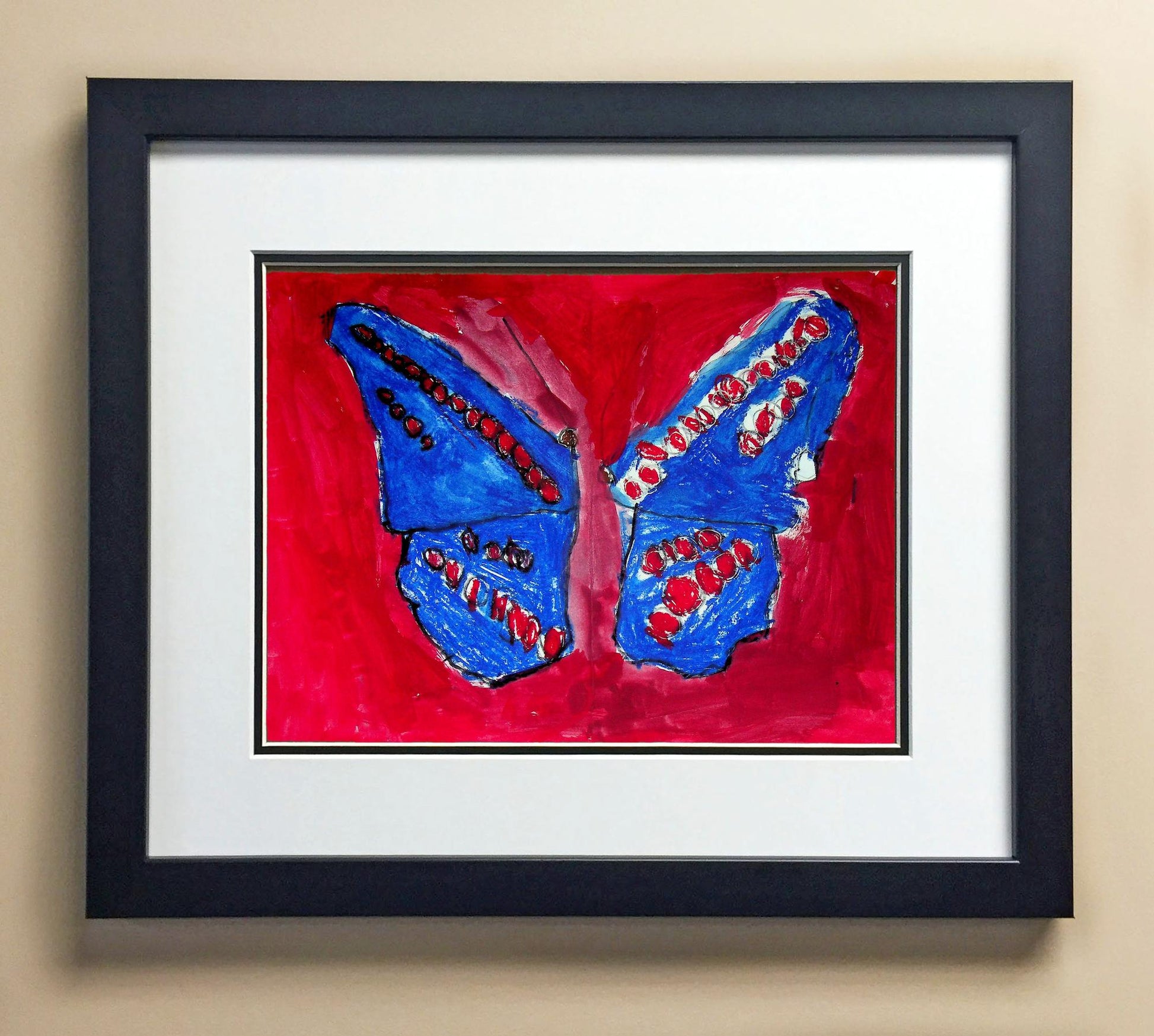 Included with the purchase is the Students Artwork, Frame, double matboard, shatter proof plexiglass, and a ready to hang backerboard with turnbuttons