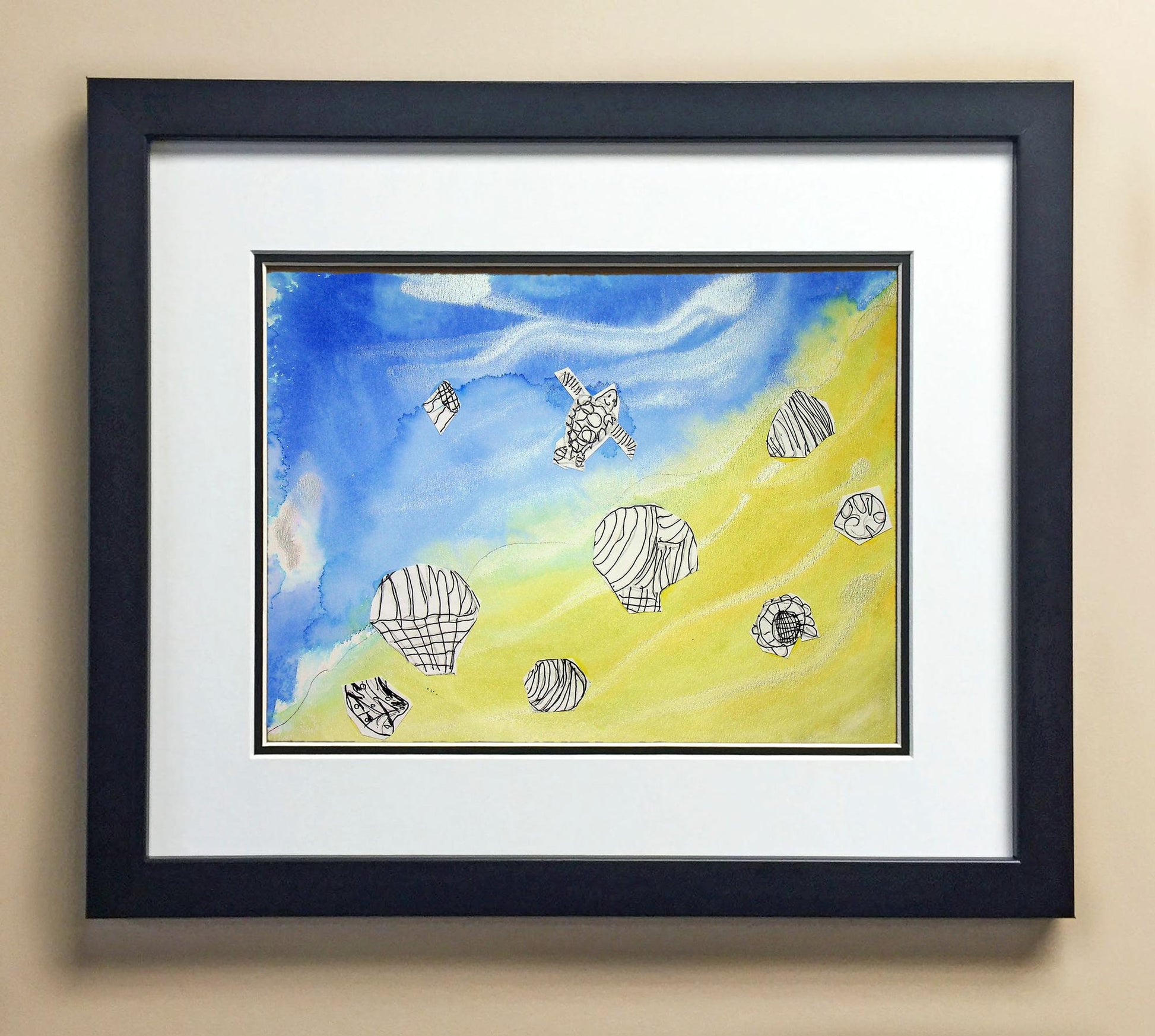 Included with the purchase is the Students Artwork, Frame, double matboard, shatter proof plexiglass, and a ready to hang backerboard with turnbuttons