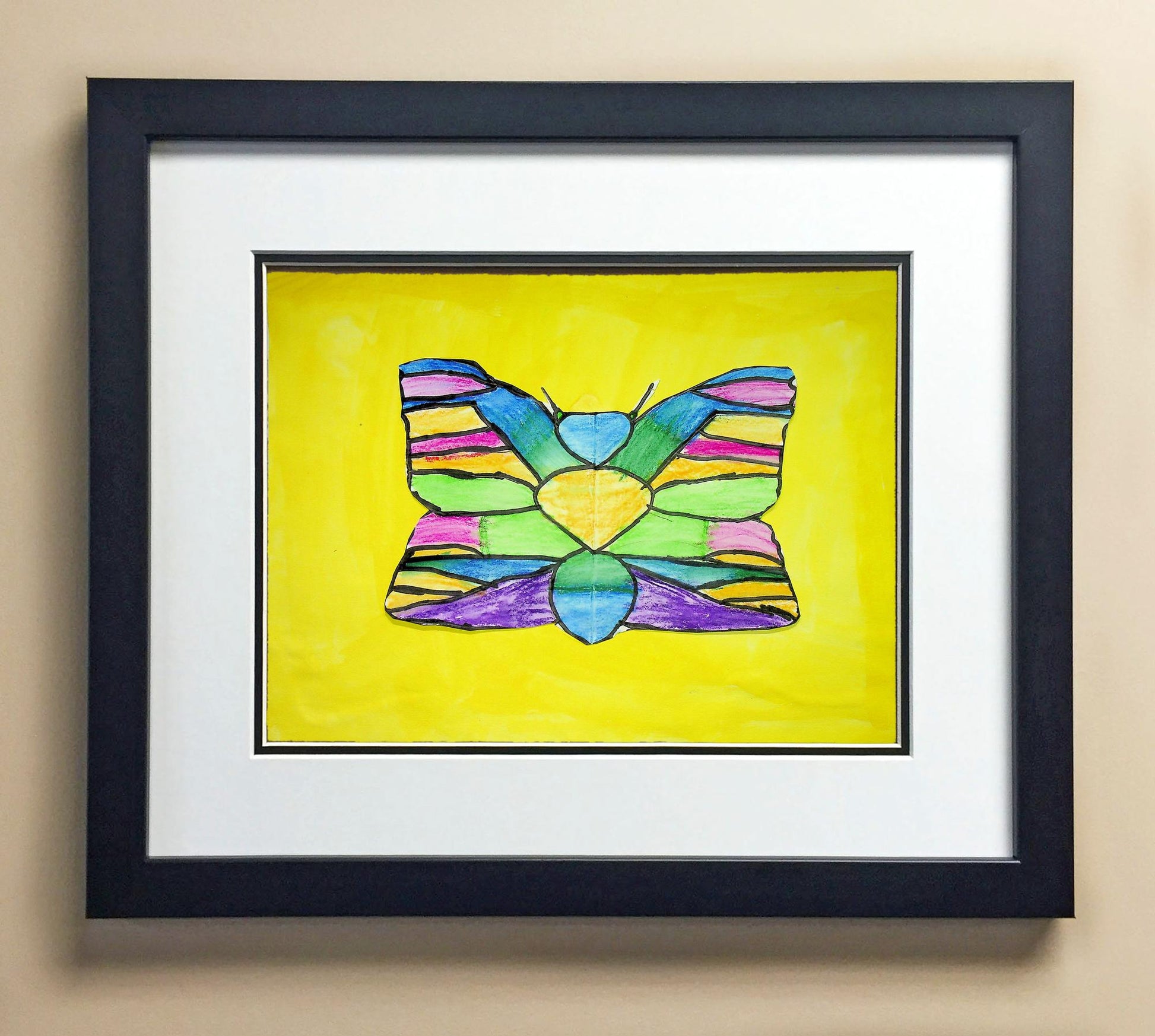 Included with the purchase is the Students Artwork, Frame, double matboard, shatter proof plexiglass, and a ready to hang backerboard with turnbuttons