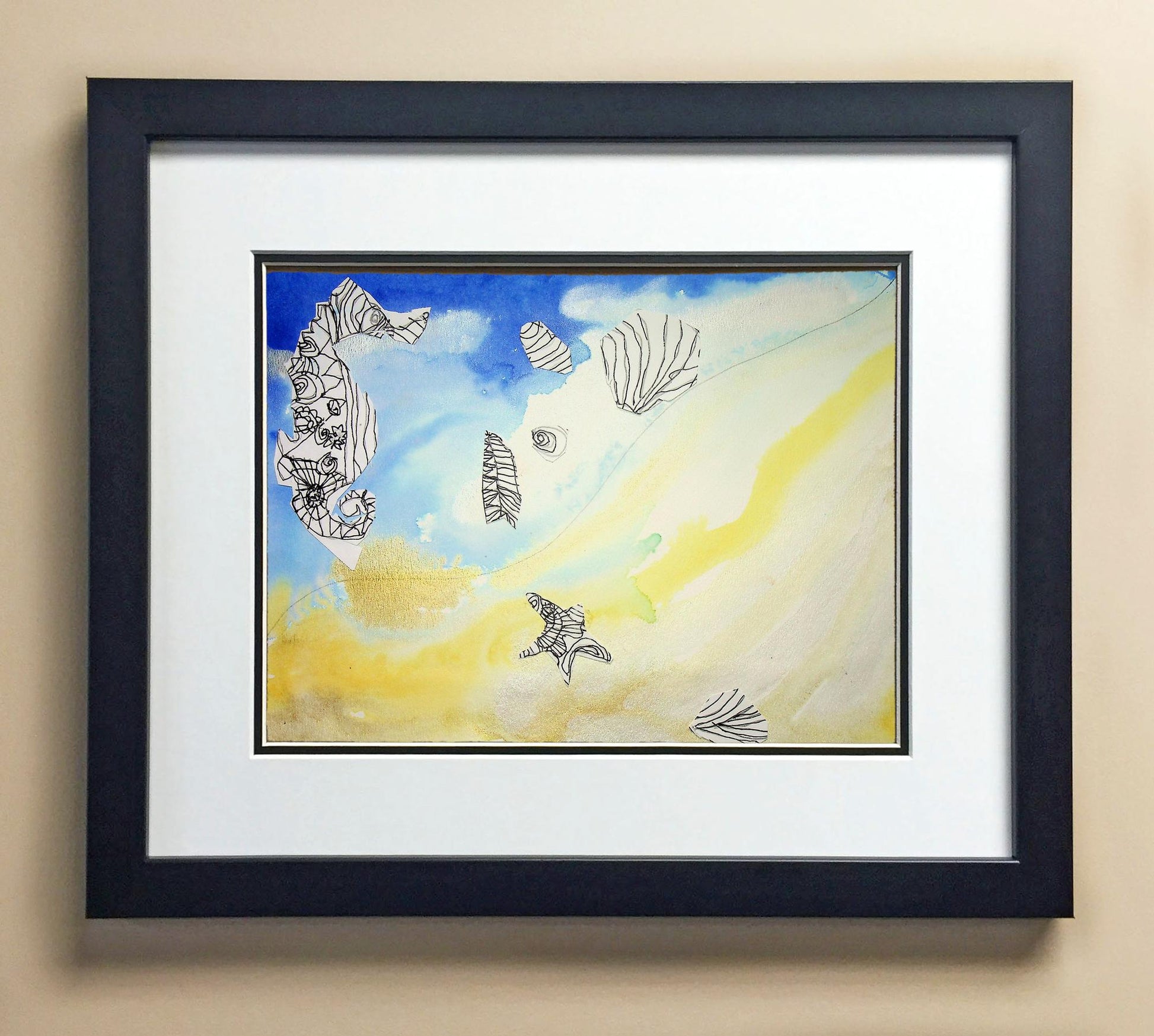 Included with the purchase is the Students Artwork, Frame, double matboard, shatter proof plexiglass, and a ready to hang backerboard with turnbuttons