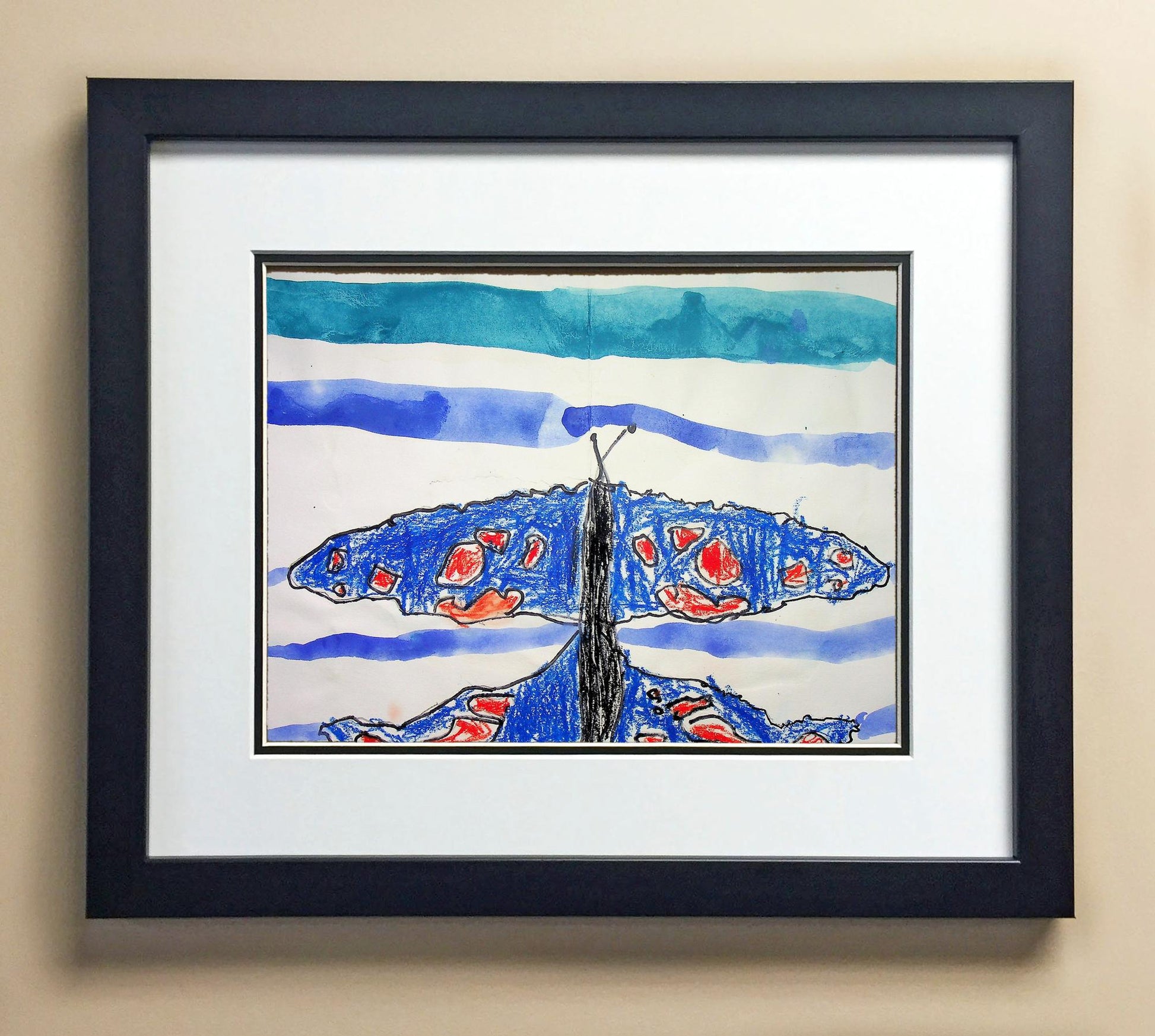 Included with the purchase is the Students Artwork, Frame, double matboard, shatter proof plexiglass, and a ready to hang backerboard with turnbuttons