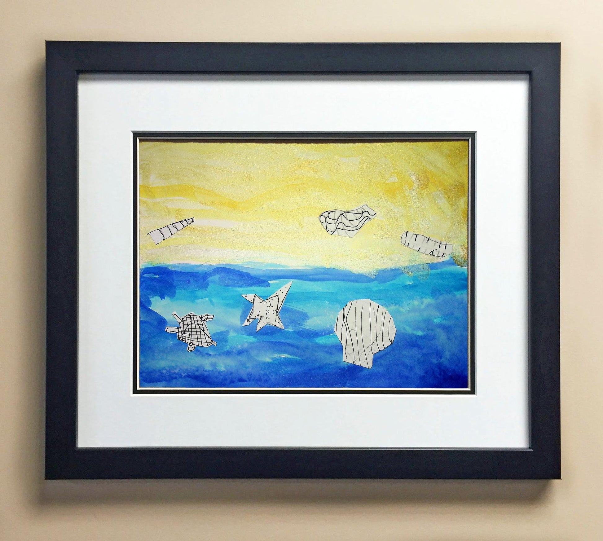 Included with the purchase is the Students Artwork, Frame, double matboard, shatter proof plexiglass, and a ready to hang backerboard with turnbuttons