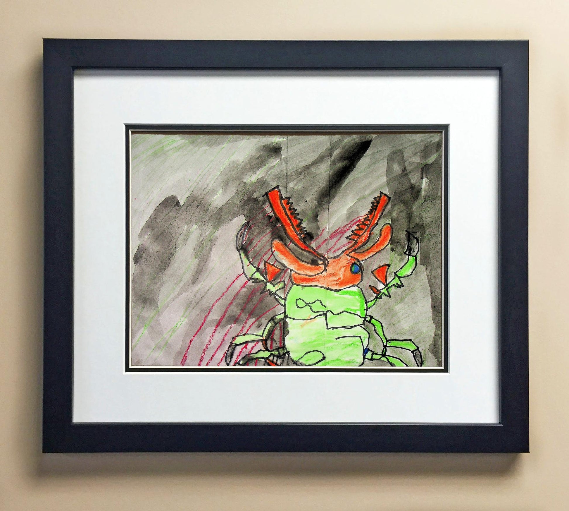 Included with the purchase is the Students Artwork, Frame, double matboard, shatter proof plexiglass, and a ready to hang backerboard with turnbuttons