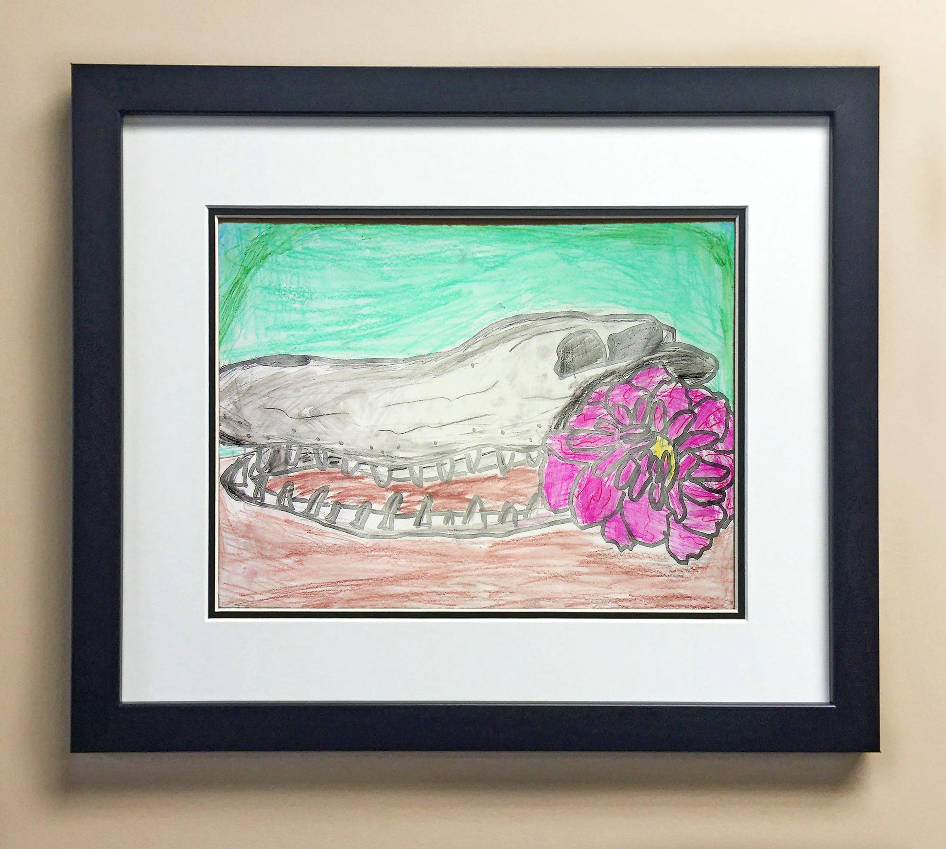Included with the purchase is the Students Artwork, Frame, double matboard, shatter proof plexiglass, and a ready to hang backerboard with turnbuttons
