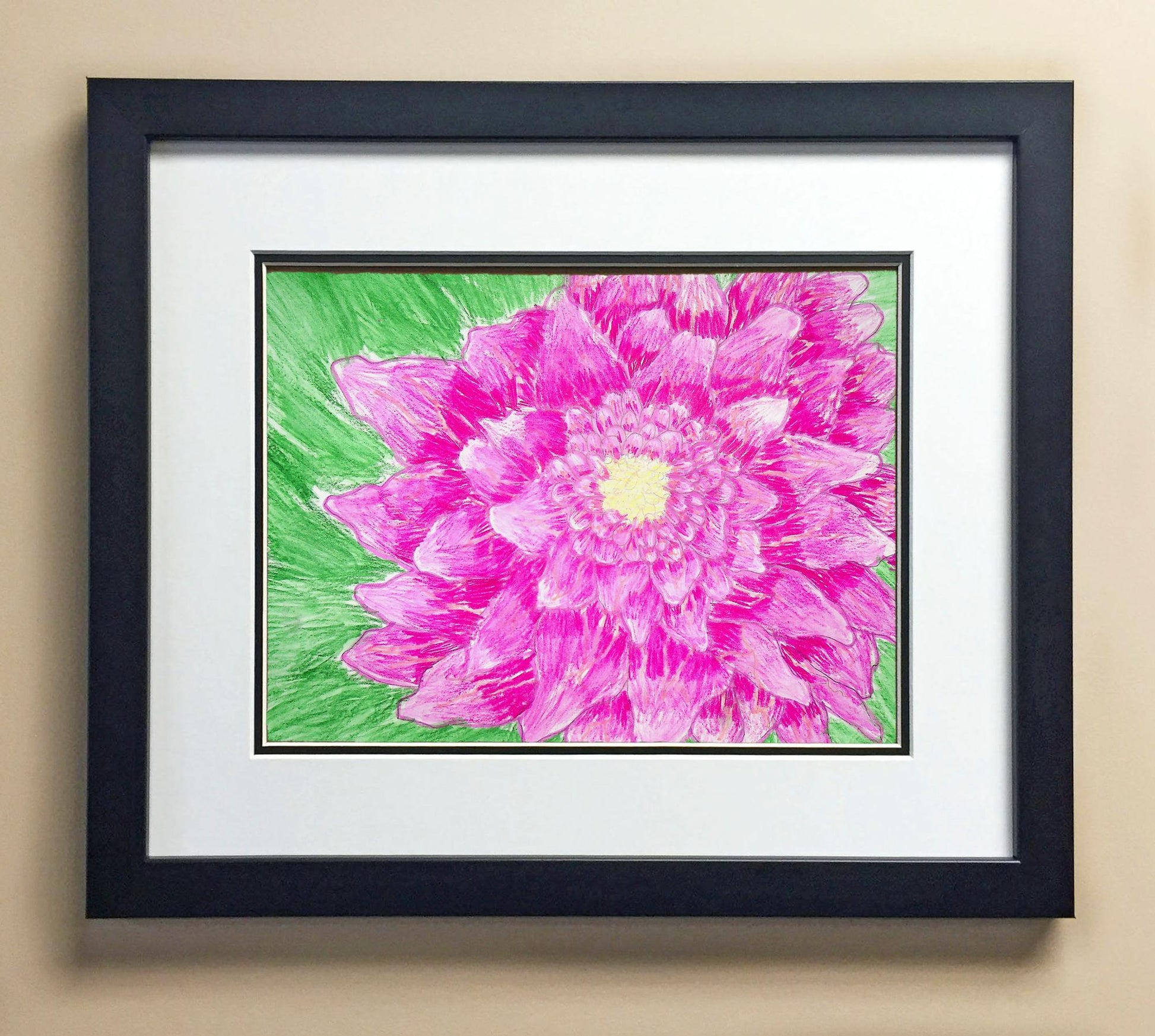 Included with the purchase is the Students Artwork, Frame, double matboard, shatter proof plexiglass, and a ready to hang backerboard with turnbuttons
