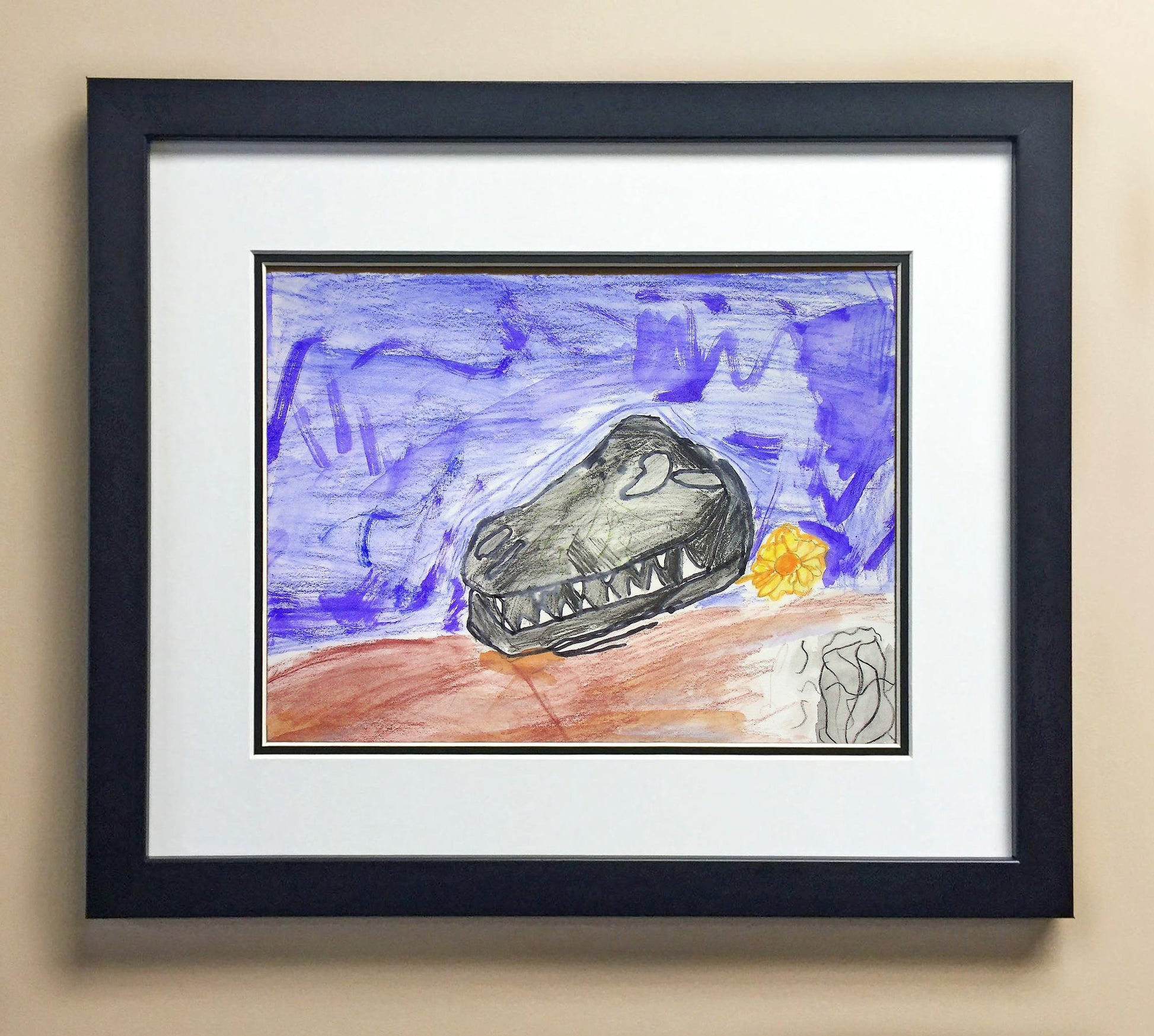 Included with the purchase is the Students Artwork, Frame, double matboard, shatter proof plexiglass, and a ready to hang backerboard with turnbuttons