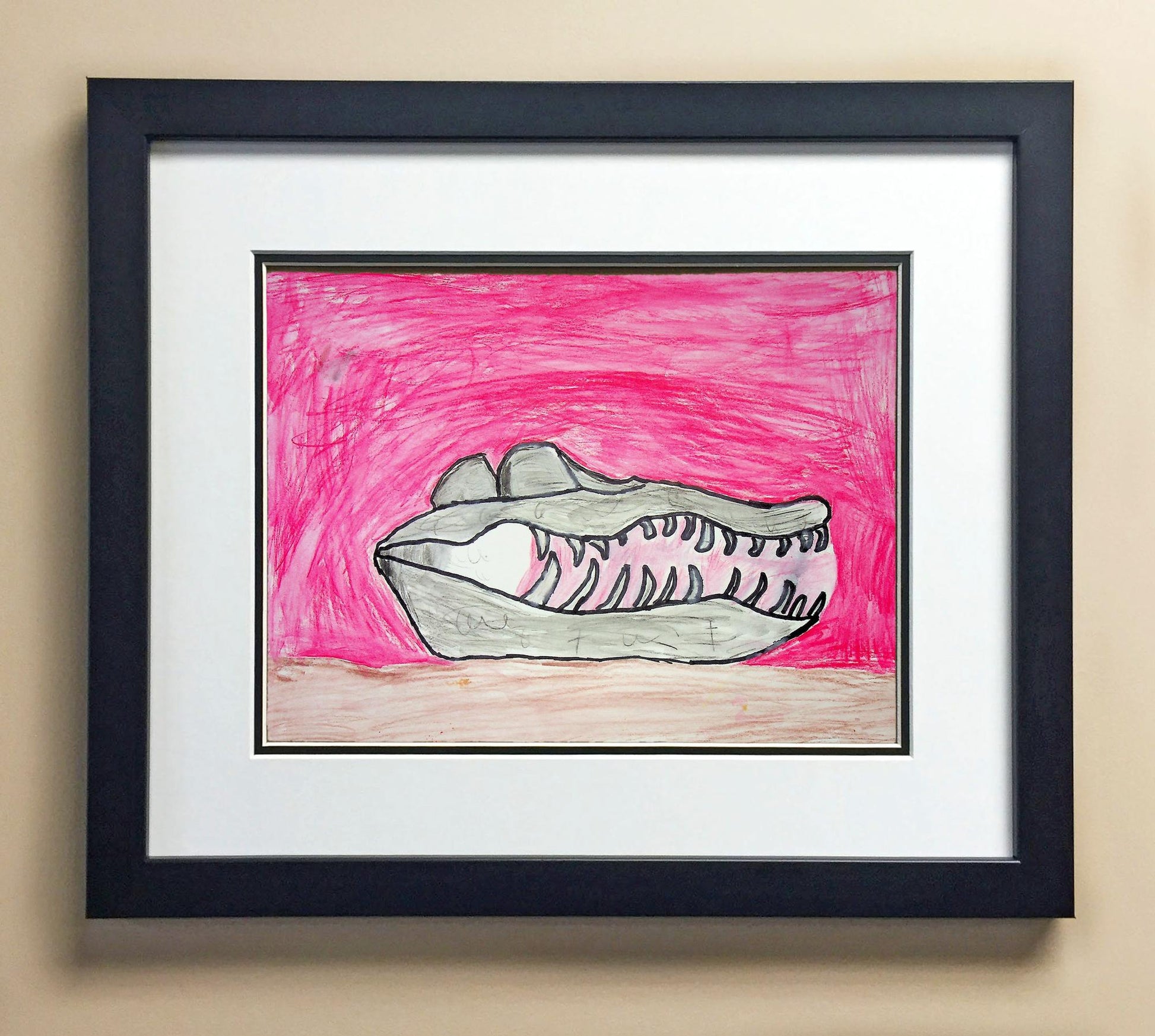 Included with the purchase is the Students Artwork, Frame, double matboard, shatter proof plexiglass, and a ready to hang backerboard with turnbuttons