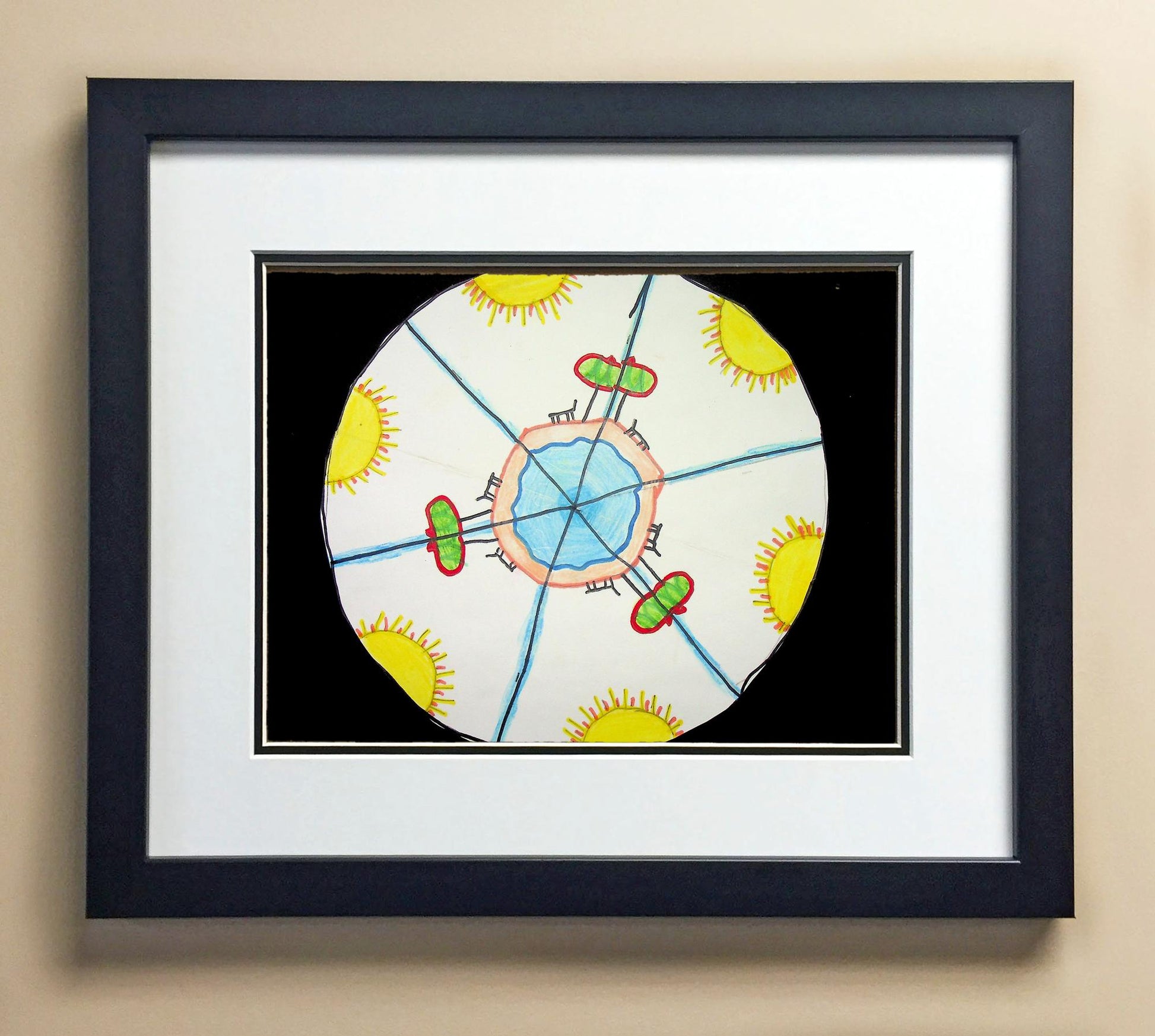 Included with the purchase is the Students Artwork, Frame, double matboard, shatter proof plexiglass, and a ready to hang backerboard with turnbuttons