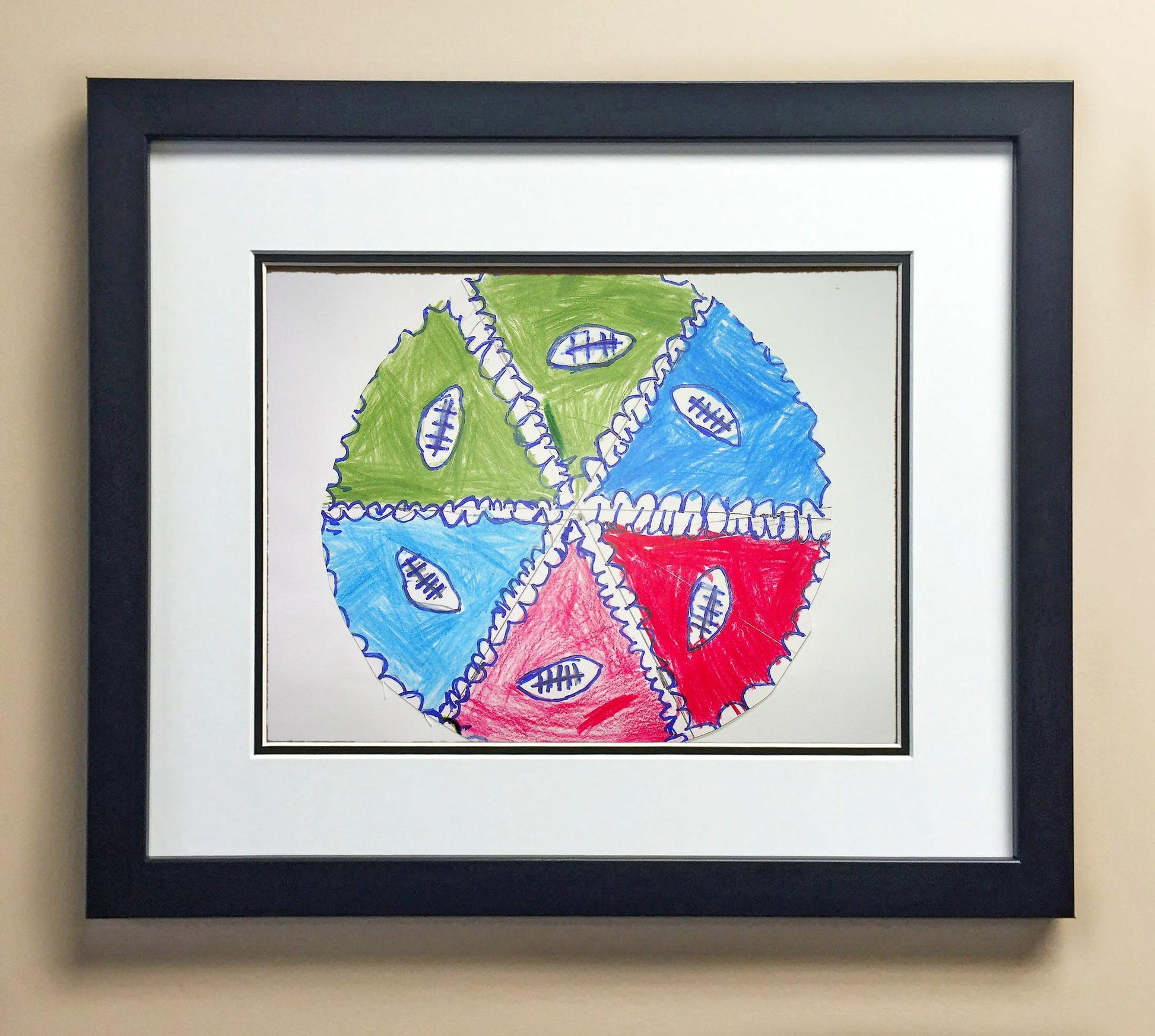 Included with the purchase is the Students Artwork, Frame, double matboard, shatter proof plexiglass, and a ready to hang backerboard with turnbuttons