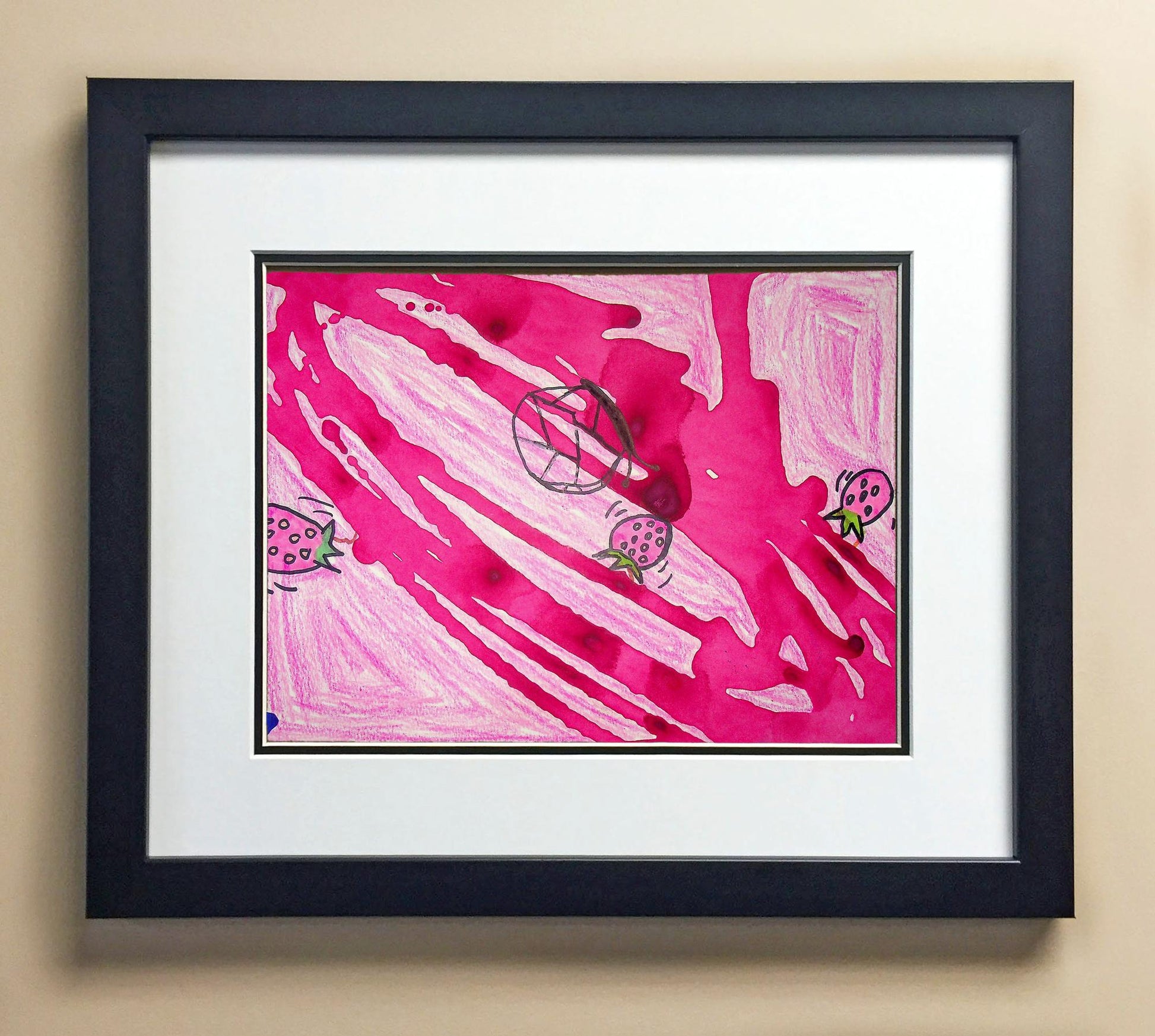 Included with the purchase is the Students Artwork, Frame, double matboard, shatter proof plexiglass, and a ready to hang backerboard with turnbuttons