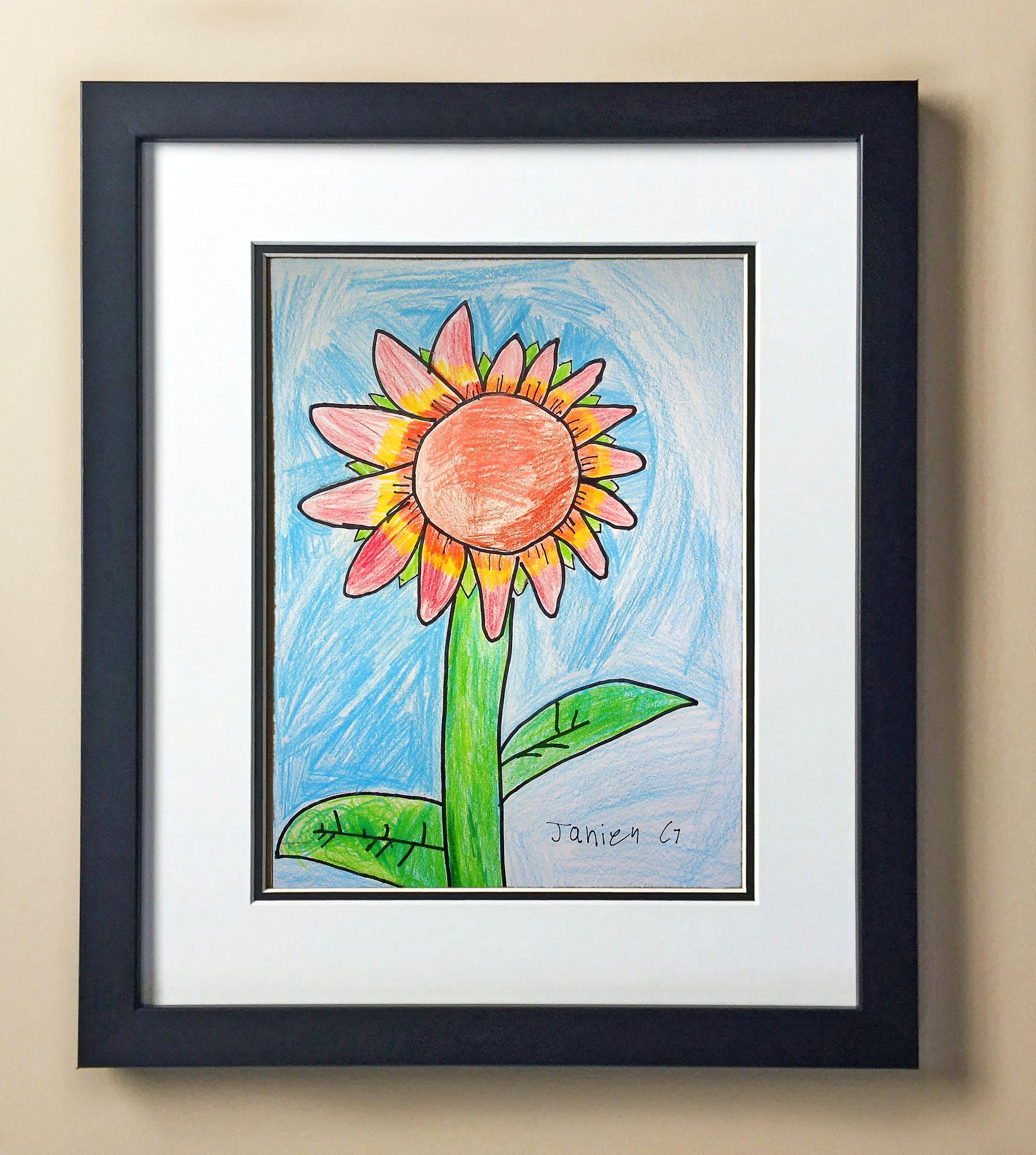 Included with the purchase is the Students Artwork, Frame, double matboard, shatter proof plexiglass, and a ready to hang backerboard with turnbuttons