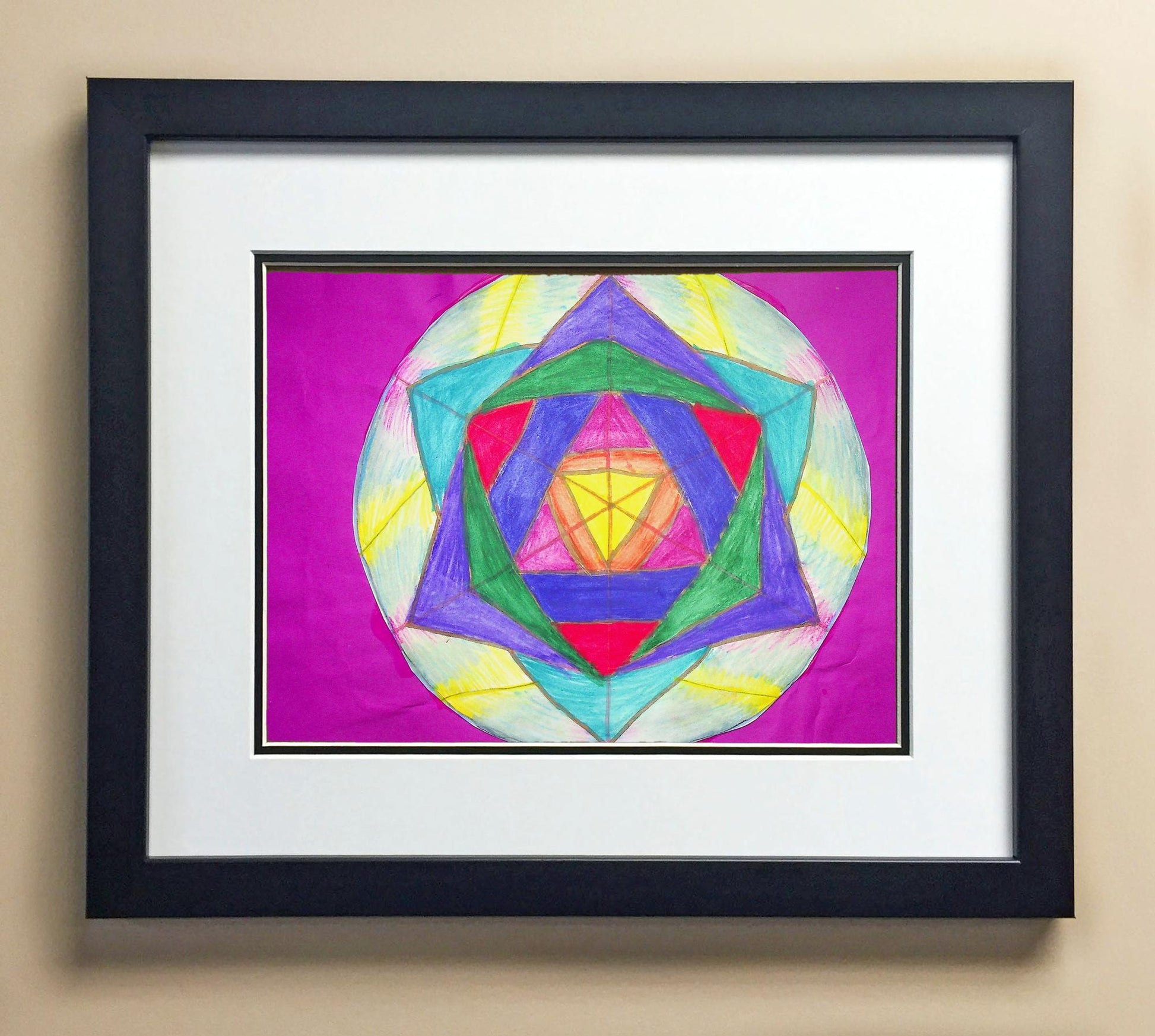 Included with the purchase is the Students Artwork, Frame, double matboard, shatter proof plexiglass, and a ready to hang backerboard with turnbuttons