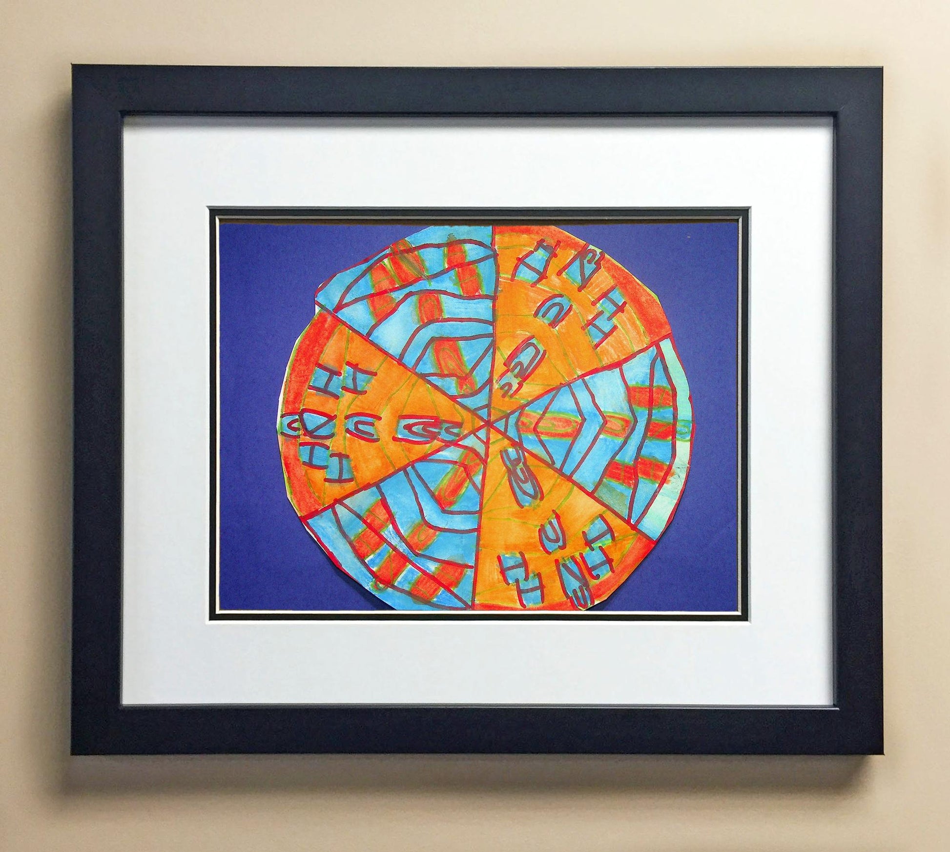Included with the purchase is the Students Artwork, Frame, double matboard, shatter proof plexiglass, and a ready to hang backerboard with turnbuttons