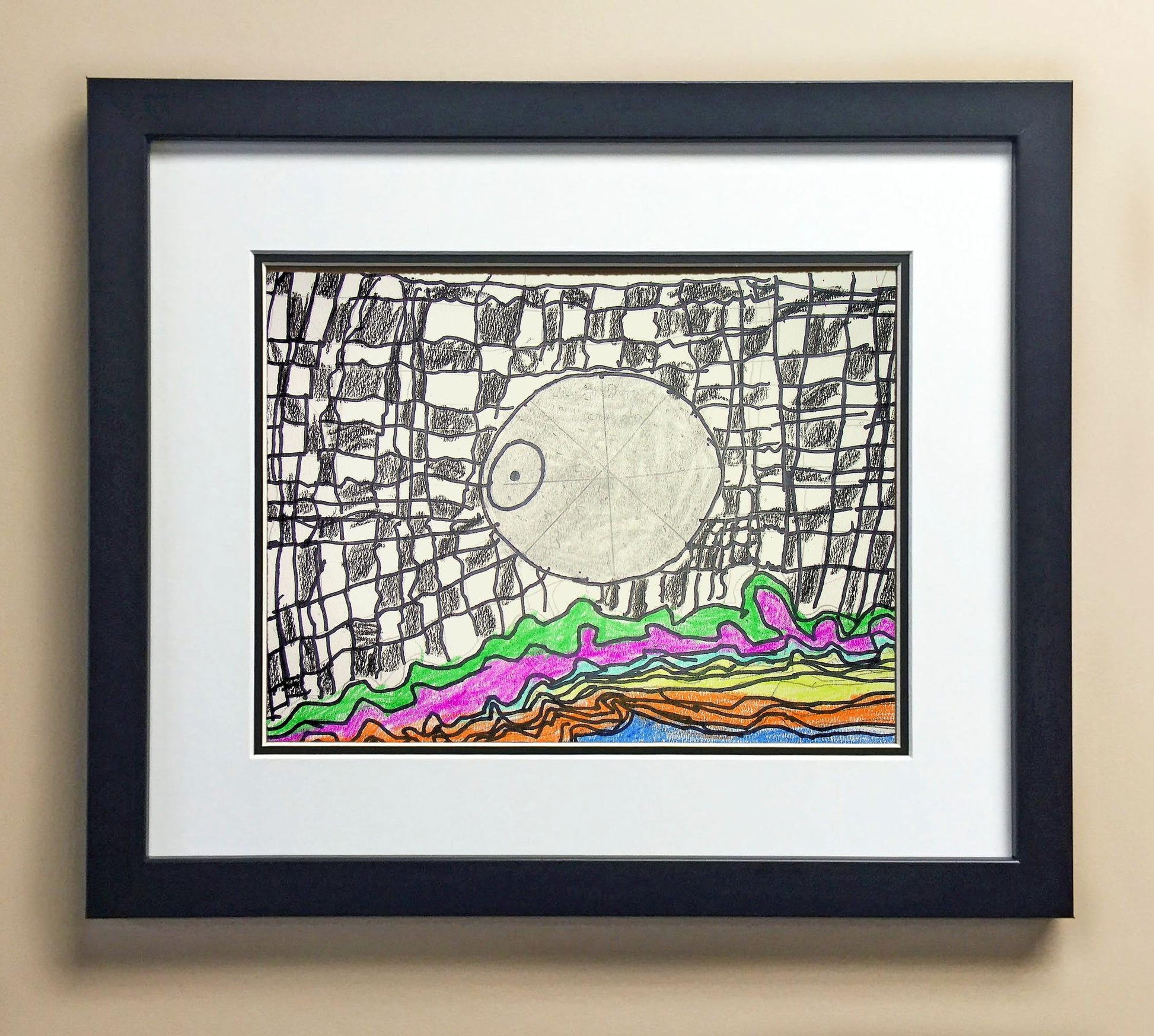 Included with the purchase is the Students Artwork, Frame, double matboard, shatter proof plexiglass, and a ready to hang backerboard with turnbuttons