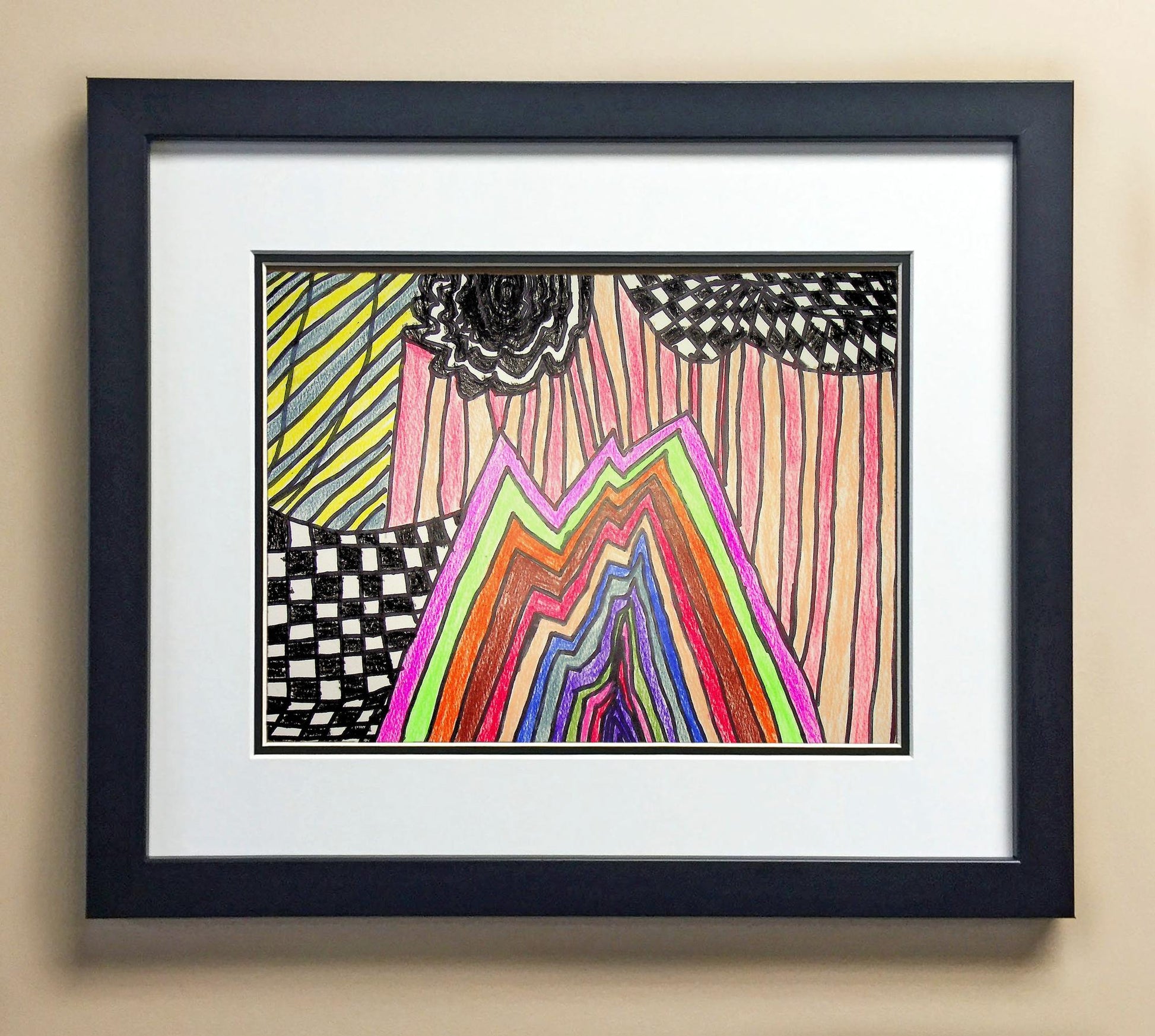 Included with the purchase is the Students Artwork, Frame, double matboard, shatter proof plexiglass, and a ready to hang backerboard with turnbuttons