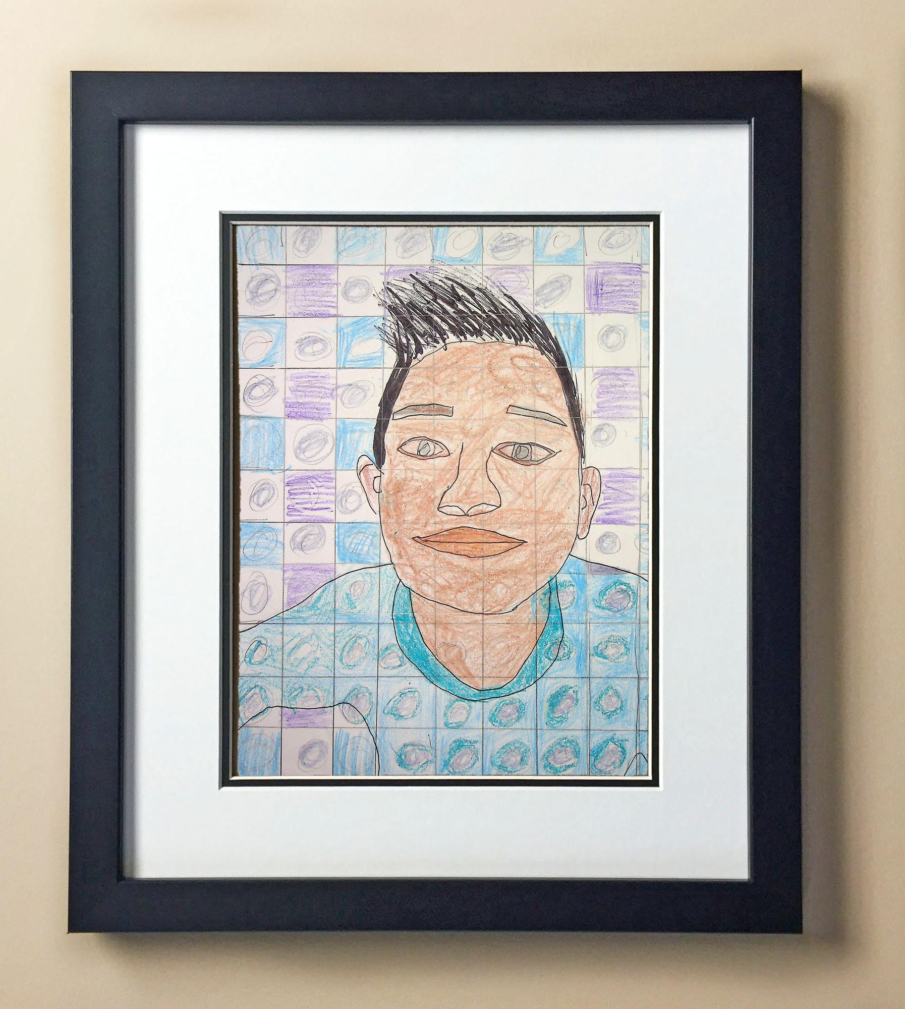 Included with the purchase is the Students Artwork, Frame, double matboard, shatter proof plexiglass, and a ready to hang backerboard with turnbuttons
