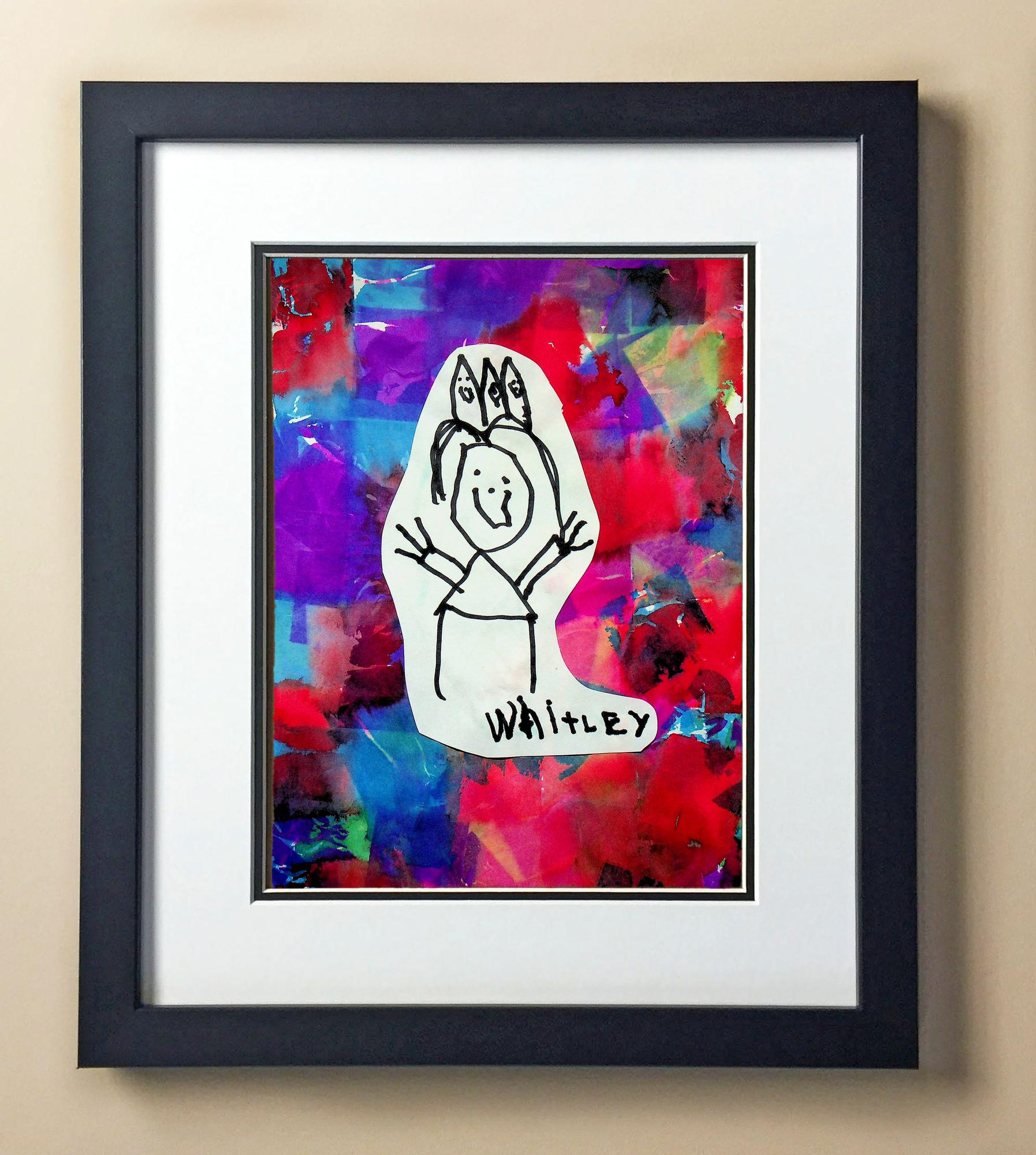 Included with the purchase is the Students Artwork, Frame, double matboard, shatter proof plexiglass, and a ready to hang backerboard with turnbuttons