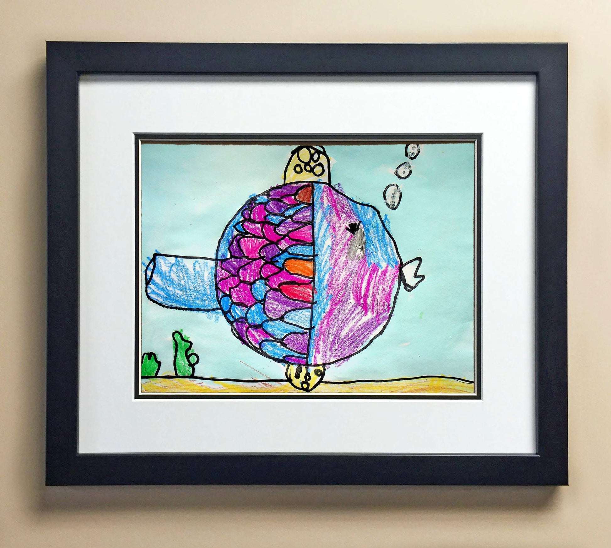 Included with the purchase is the Students Artwork, Frame, double matboard, shatter proof plexiglass, and a ready to hang backerboard with turnbuttons