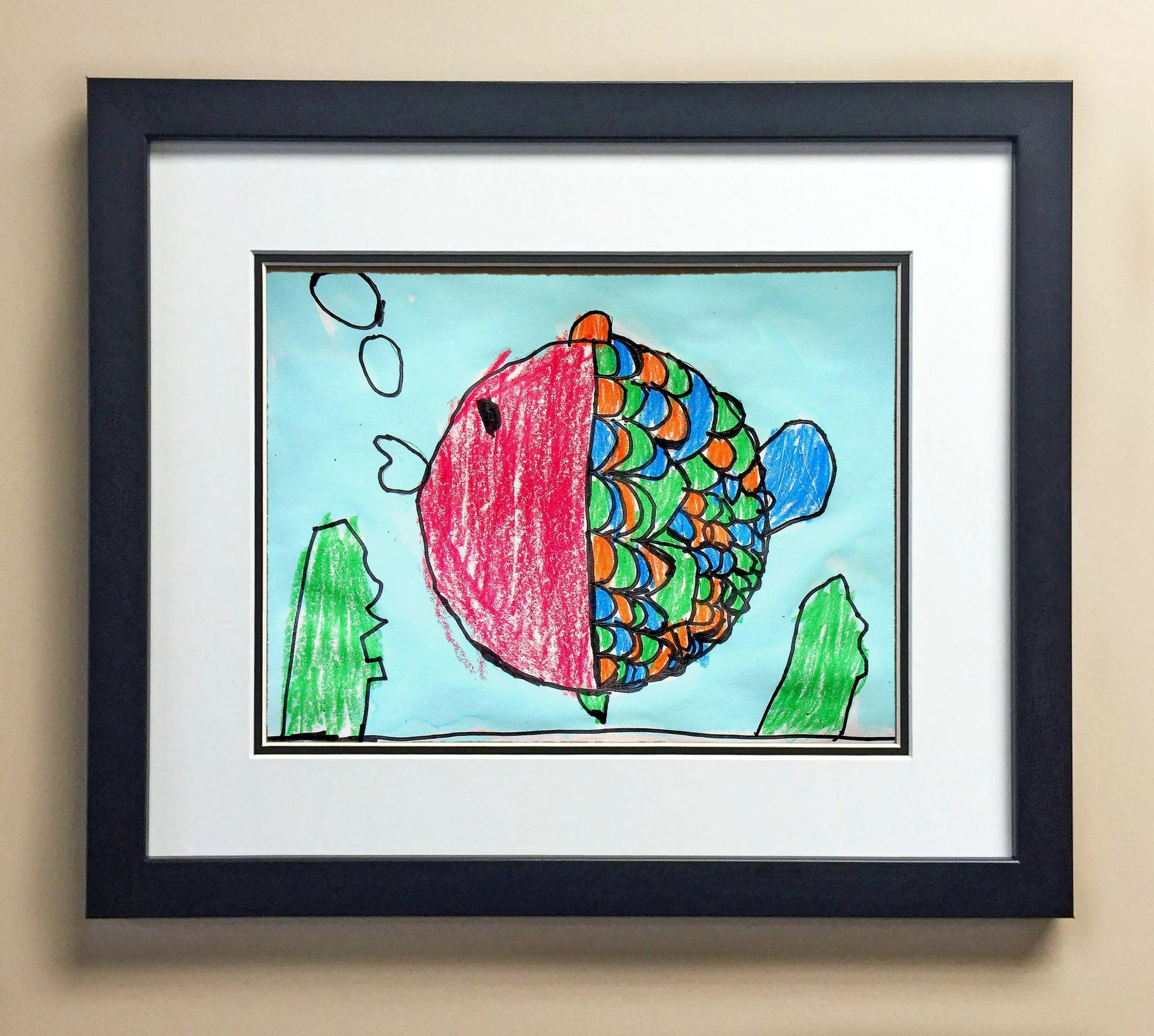 Included with the purchase is the Students Artwork, Frame, double matboard, shatter proof plexiglass, and a ready to hang backerboard with turnbuttons
