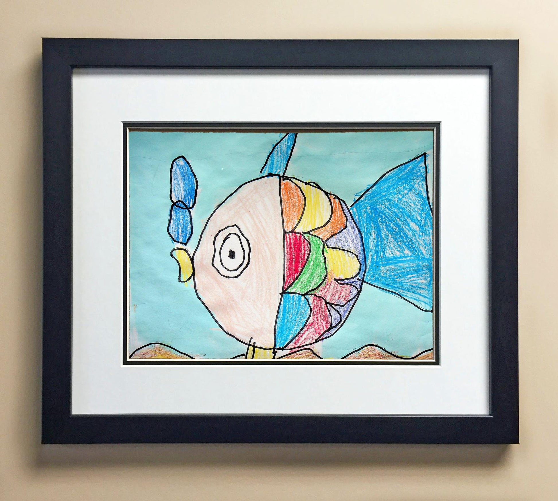 Included with the purchase is the Students Artwork, Frame, double matboard, shatter proof plexiglass, and a ready to hang backerboard with turnbuttons