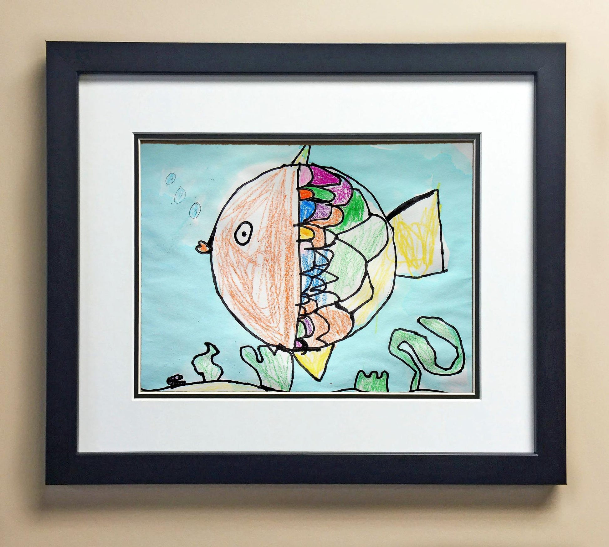 Included with the purchase is the Students Artwork, Frame, double matboard, shatter proof plexiglass, and a ready to hang backerboard with turnbuttons