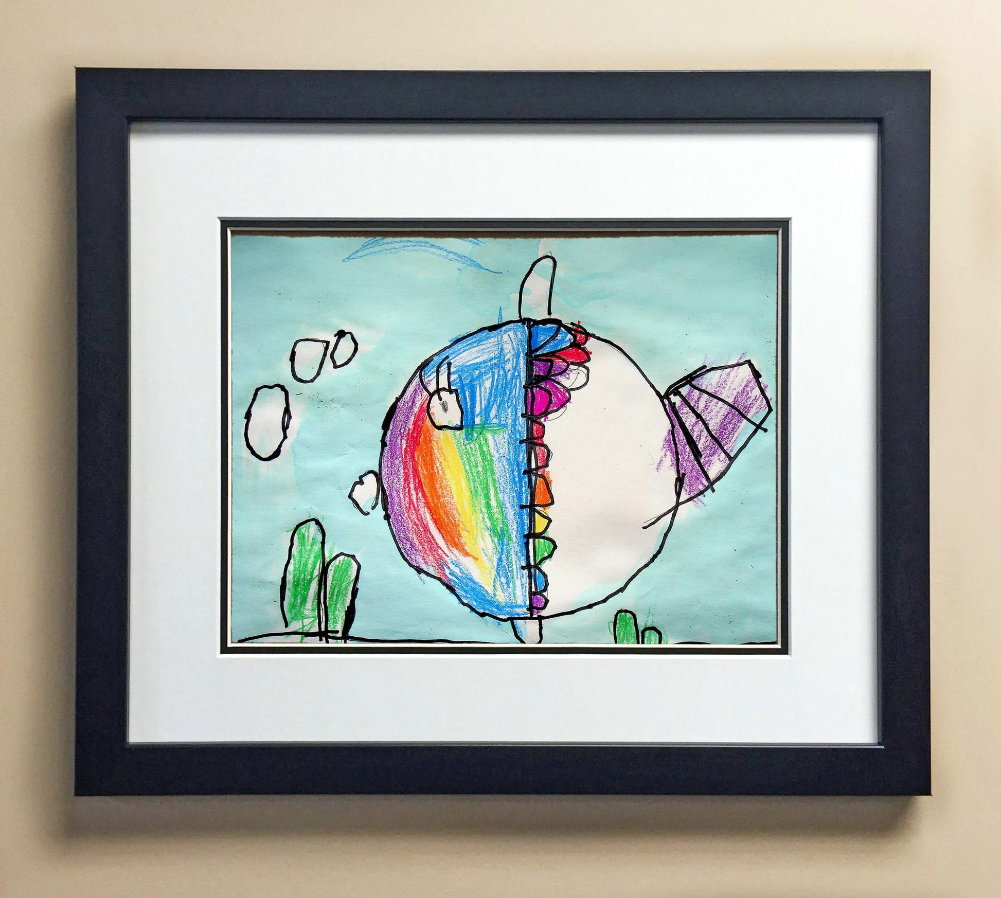 Included with the purchase is the Students Artwork, Frame, double matboard, shatter proof plexiglass, and a ready to hang backerboard with turnbuttons
