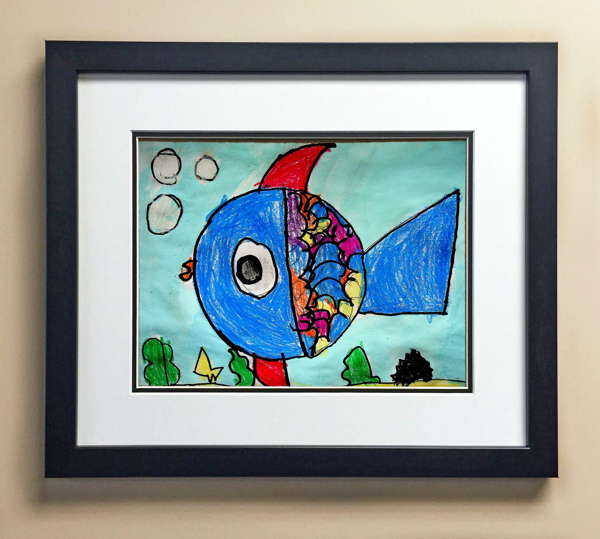 Included with the purchase is the Students Artwork, Frame, double matboard, shatter proof plexiglass, and a ready to hang backerboard with turnbuttons