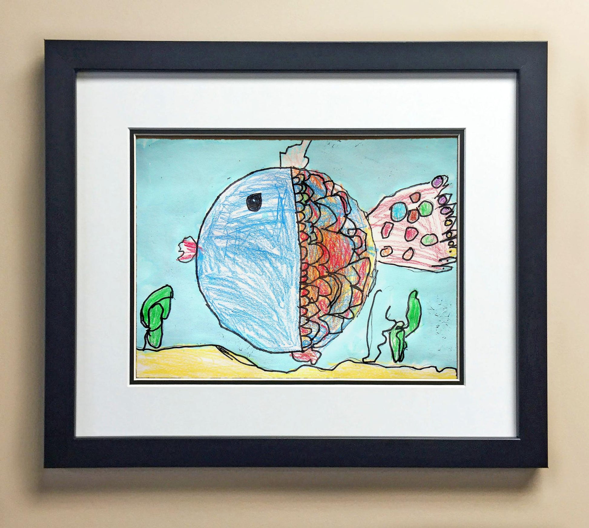 Included with the purchase is the Students Artwork, Frame, double matboard, shatter proof plexiglass, and a ready to hang backerboard with turnbuttons