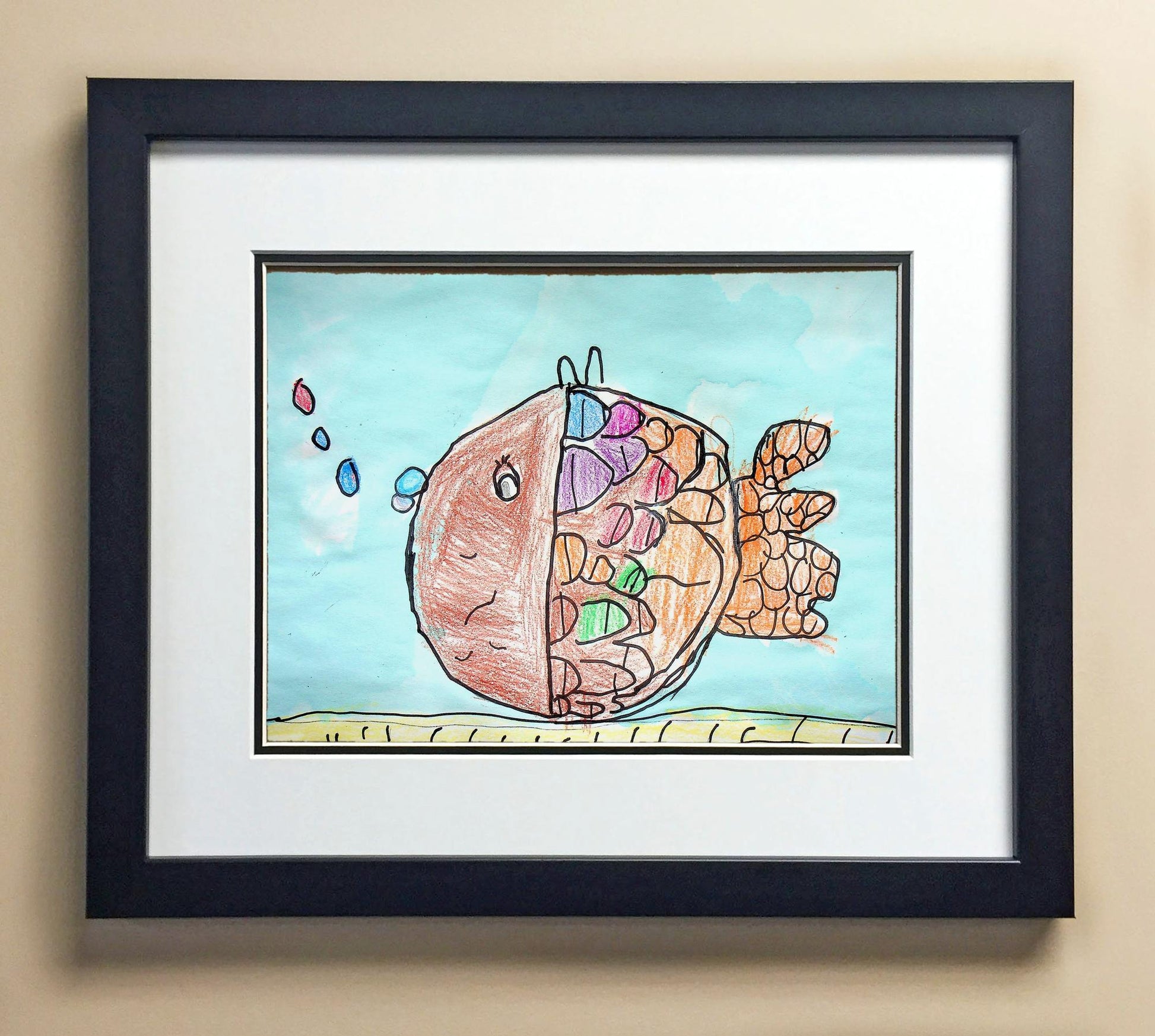 Included with the purchase is the Students Artwork, Frame, double matboard, shatter proof plexiglass, and a ready to hang backerboard with turnbuttons