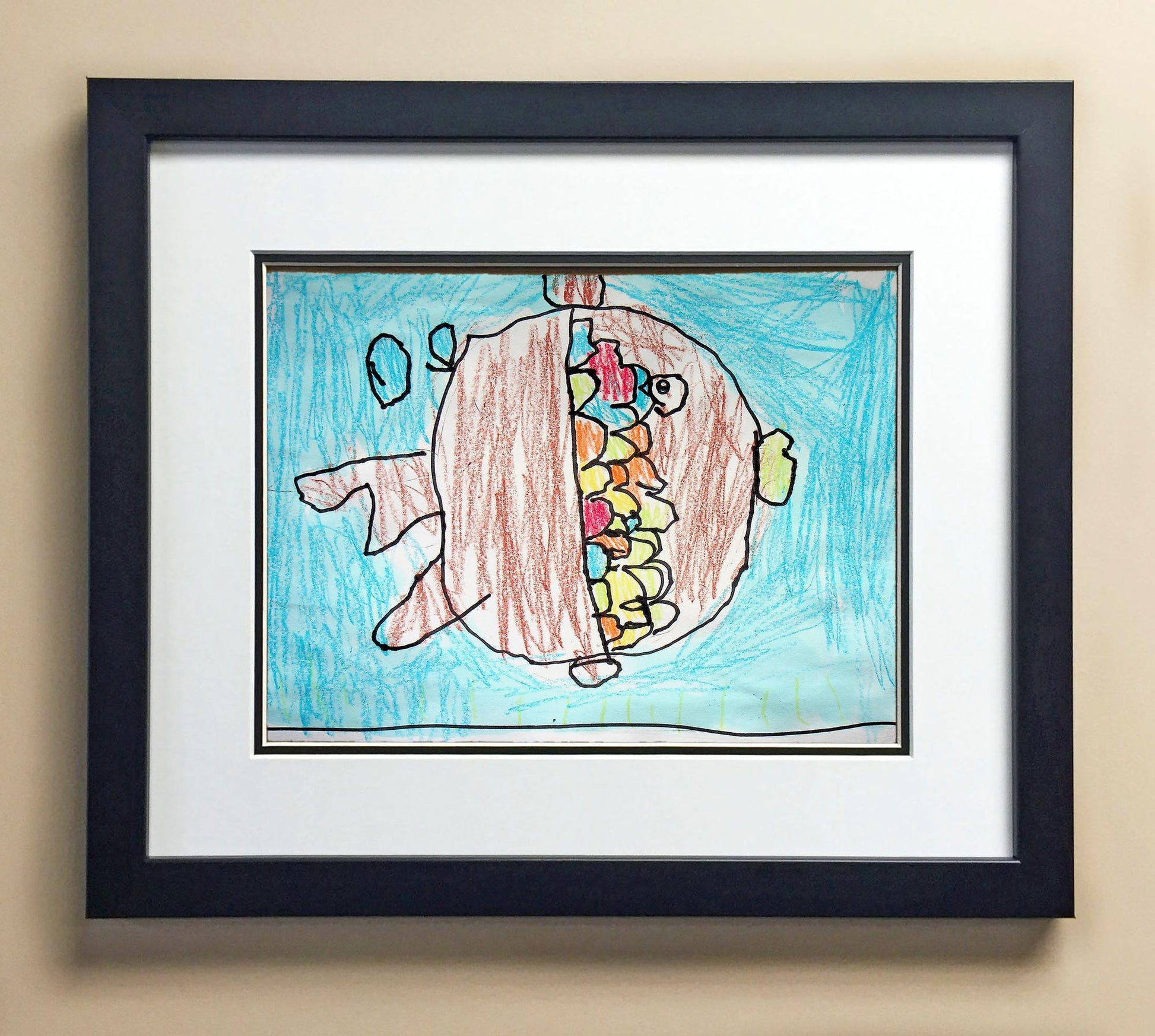 Included with the purchase is the Students Artwork, Frame, double matboard, shatter proof plexiglass, and a ready to hang backerboard with turnbuttons
