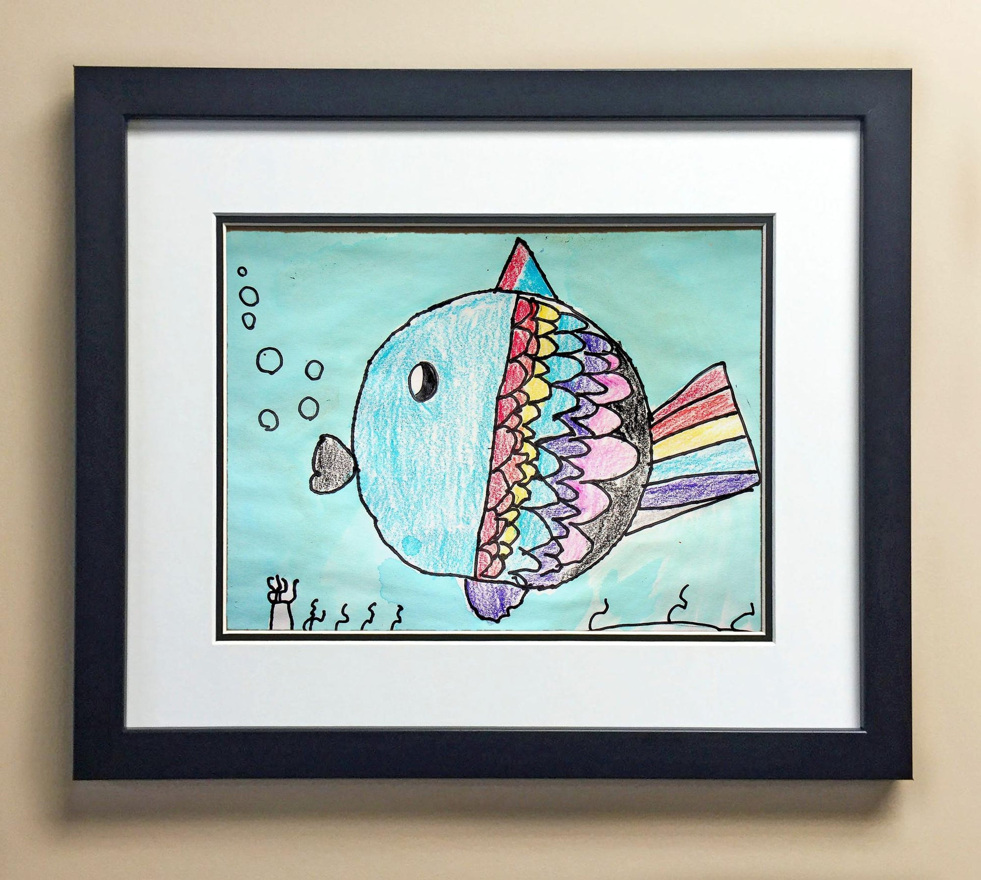Included with the purchase is the Students Artwork, Frame, double matboard, shatter proof plexiglass, and a ready to hang backerboard with turnbuttons