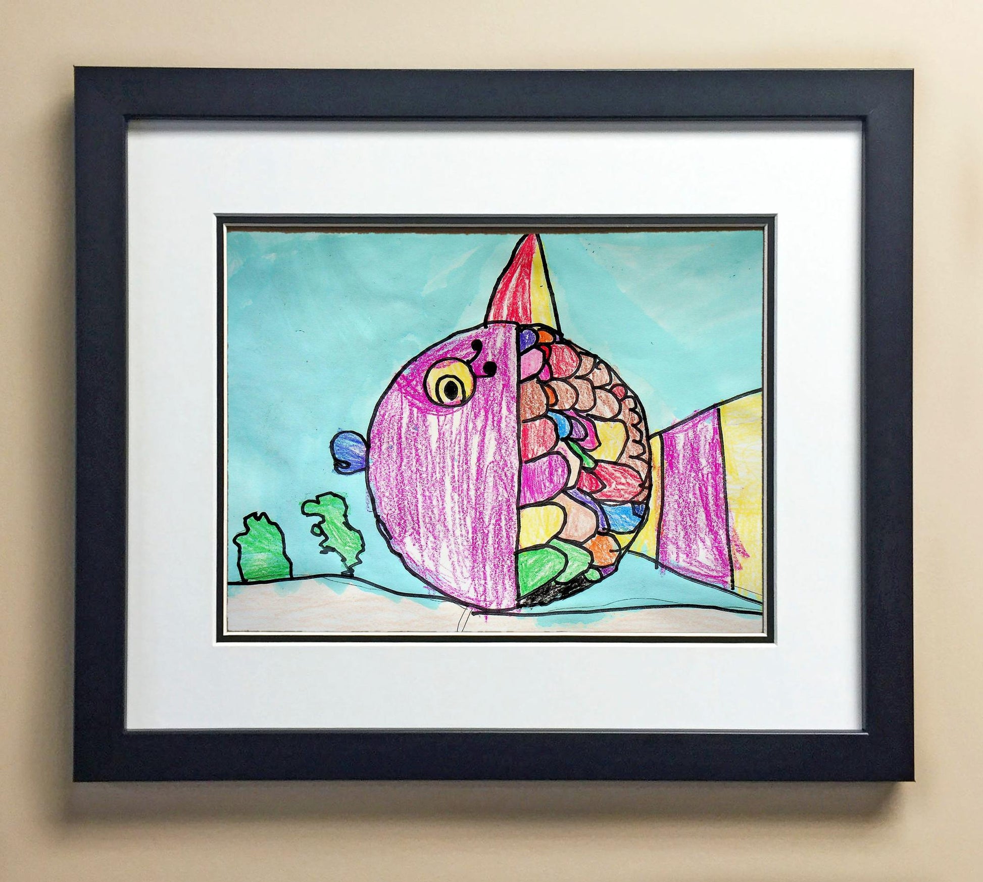 Included with the purchase is the Students Artwork, Frame, double matboard, shatter proof plexiglass, and a ready to hang backerboard with turnbuttons