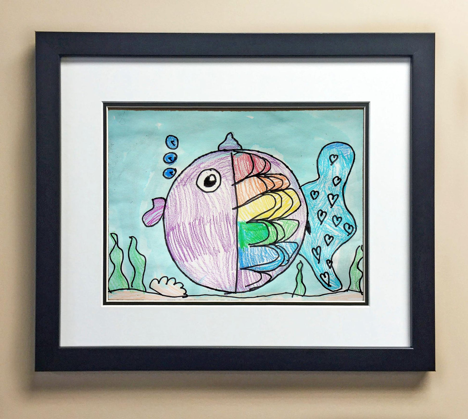 Included with the purchase is the Students Artwork, Frame, double matboard, shatter proof plexiglass, and a ready to hang backerboard with turnbuttons