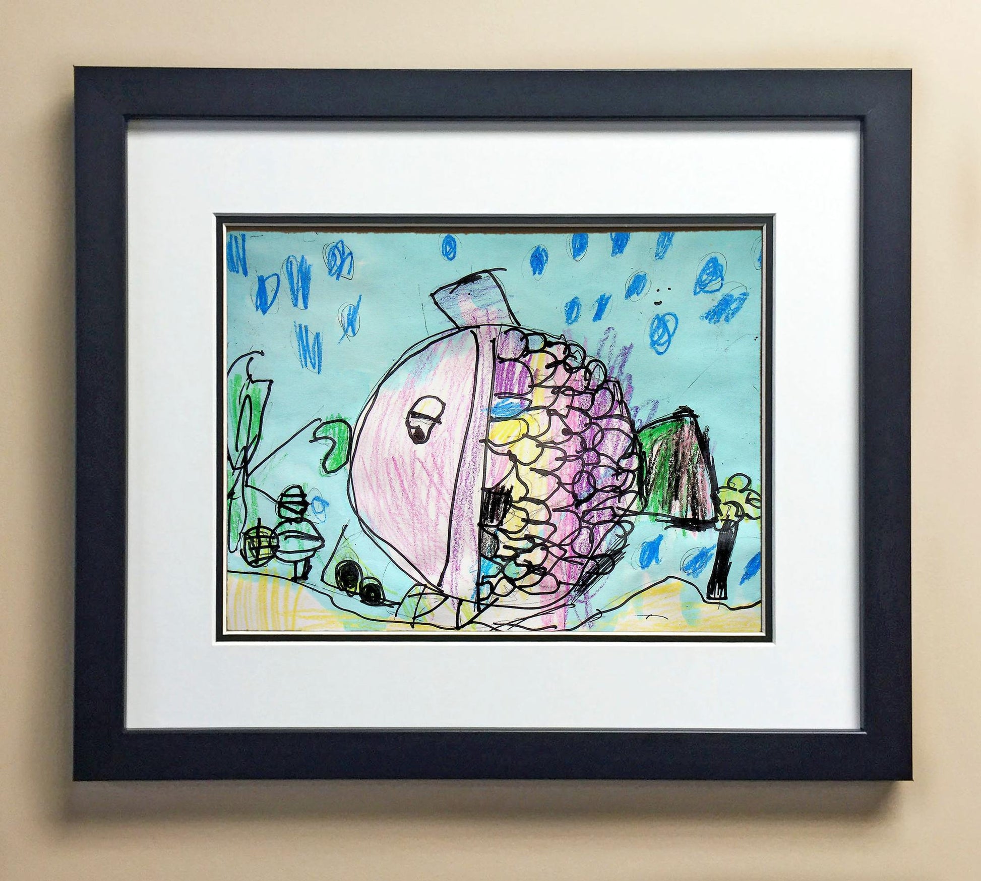 Included with the purchase is the Students Artwork, Frame, double matboard, shatter proof plexiglass, and a ready to hang backerboard with turnbuttons