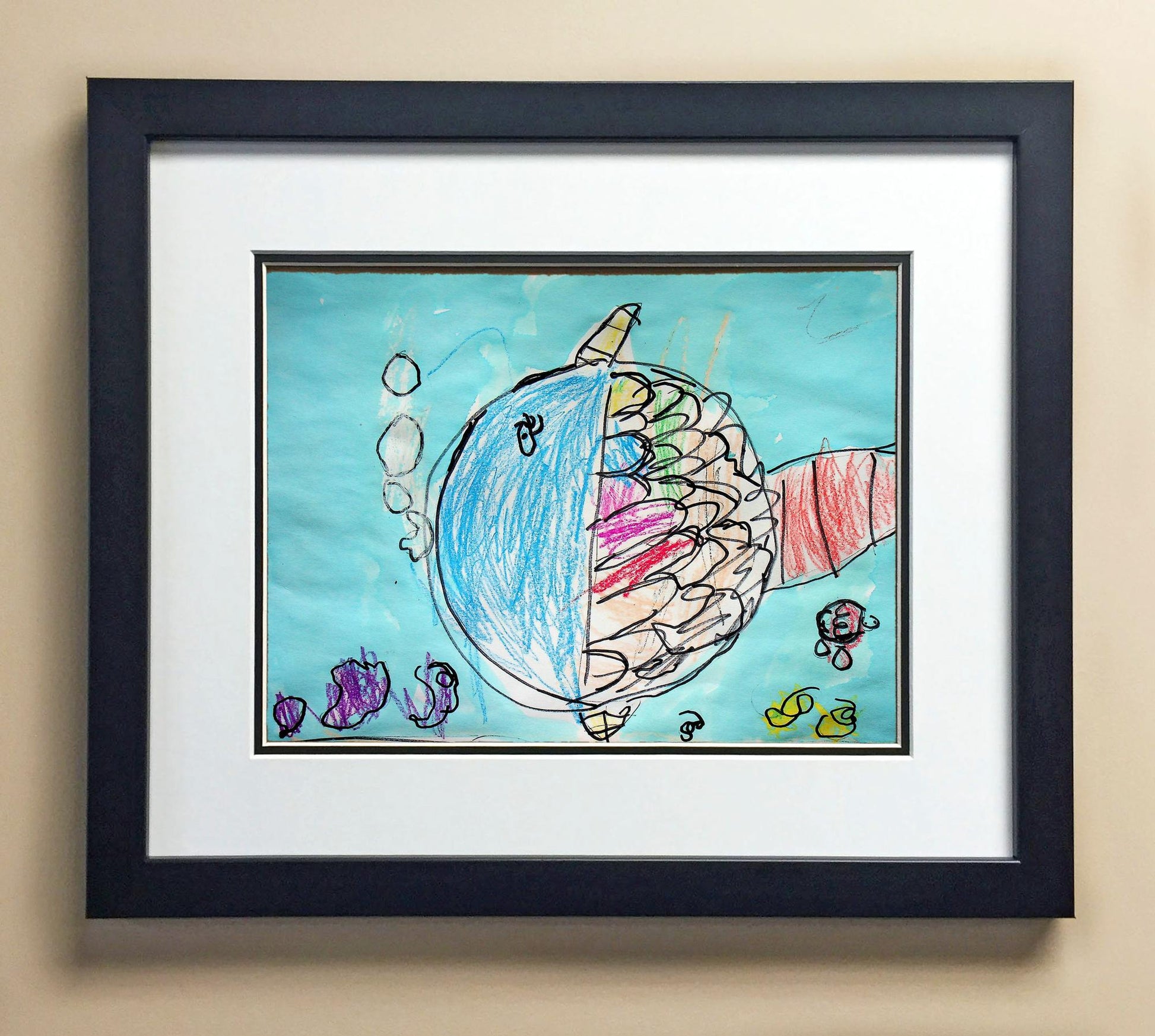 Included with the purchase is the Students Artwork, Frame, double matboard, shatter proof plexiglass, and a ready to hang backerboard with turnbuttons