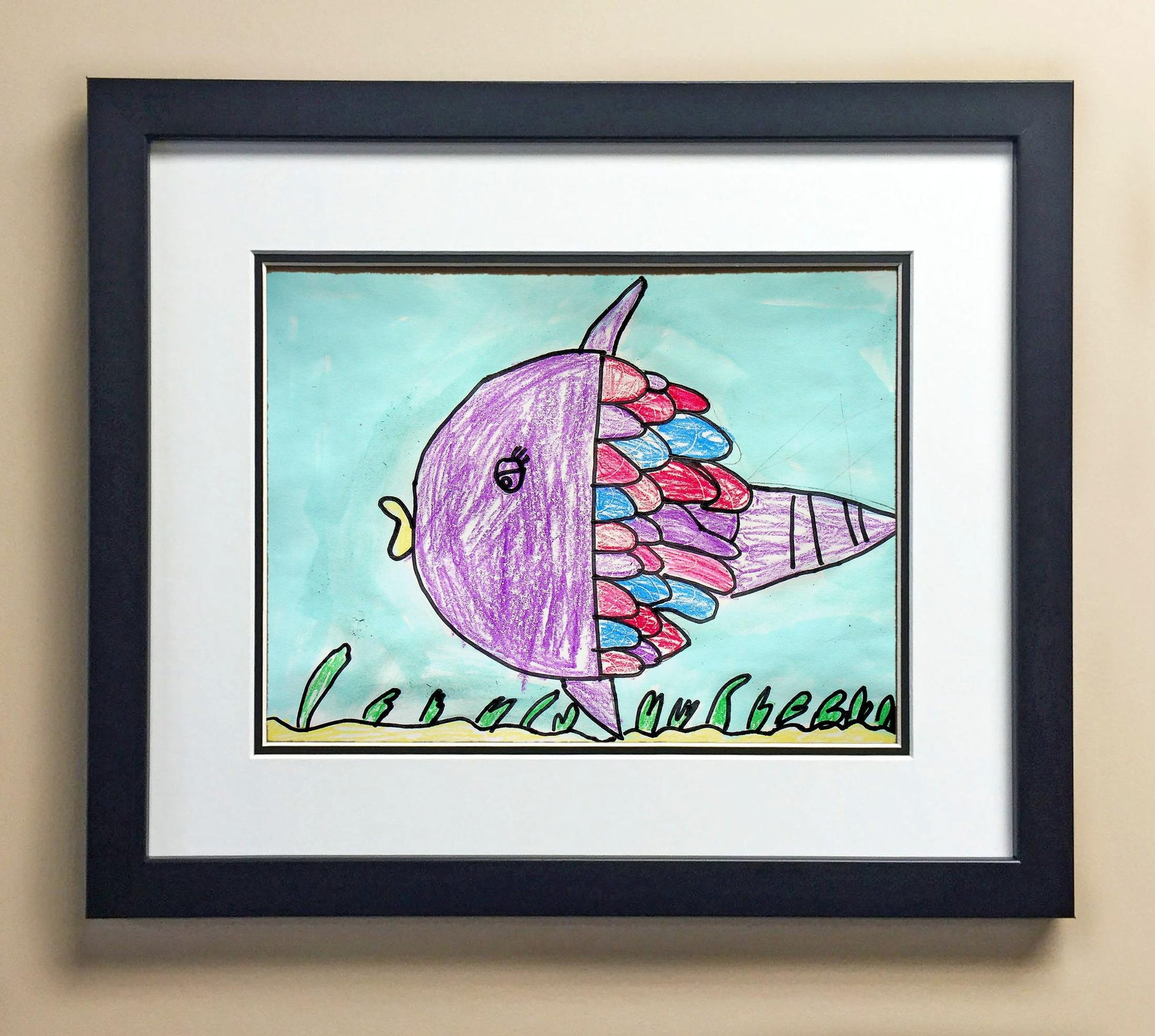 Included with the purchase is the Students Artwork, Frame, double matboard, shatter proof plexiglass, and a ready to hang backerboard with turnbuttons