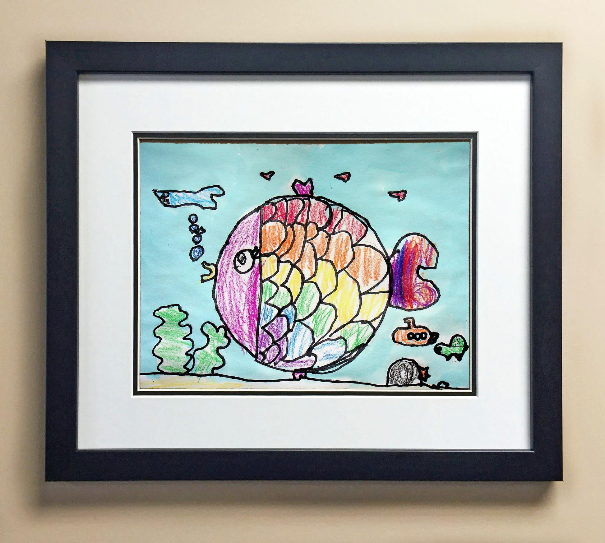 Included with the purchase is the Students Artwork, Frame, double matboard, shatter proof plexiglass, and a ready to hang backerboard with turnbuttons