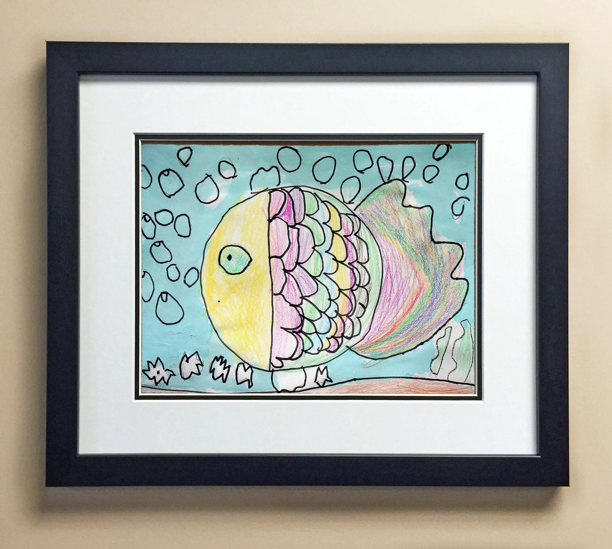 Included with the purchase is the Students Artwork, Frame, double matboard, shatter proof plexiglass, and a ready to hang backerboard with turnbuttons
