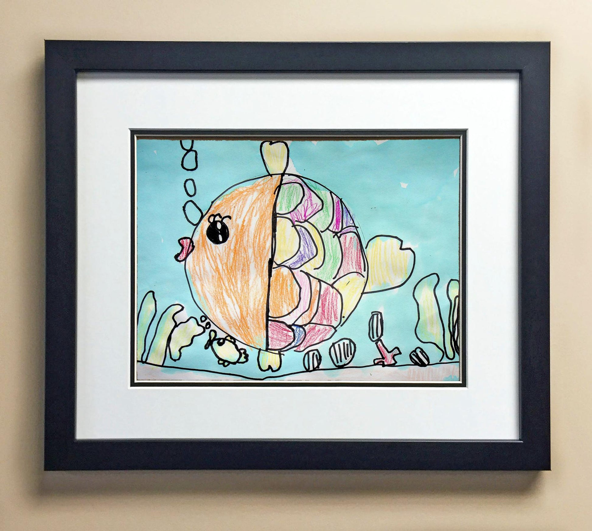 Included with the purchase is the Students Artwork, Frame, double matboard, shatter proof plexiglass, and a ready to hang backerboard with turnbuttons