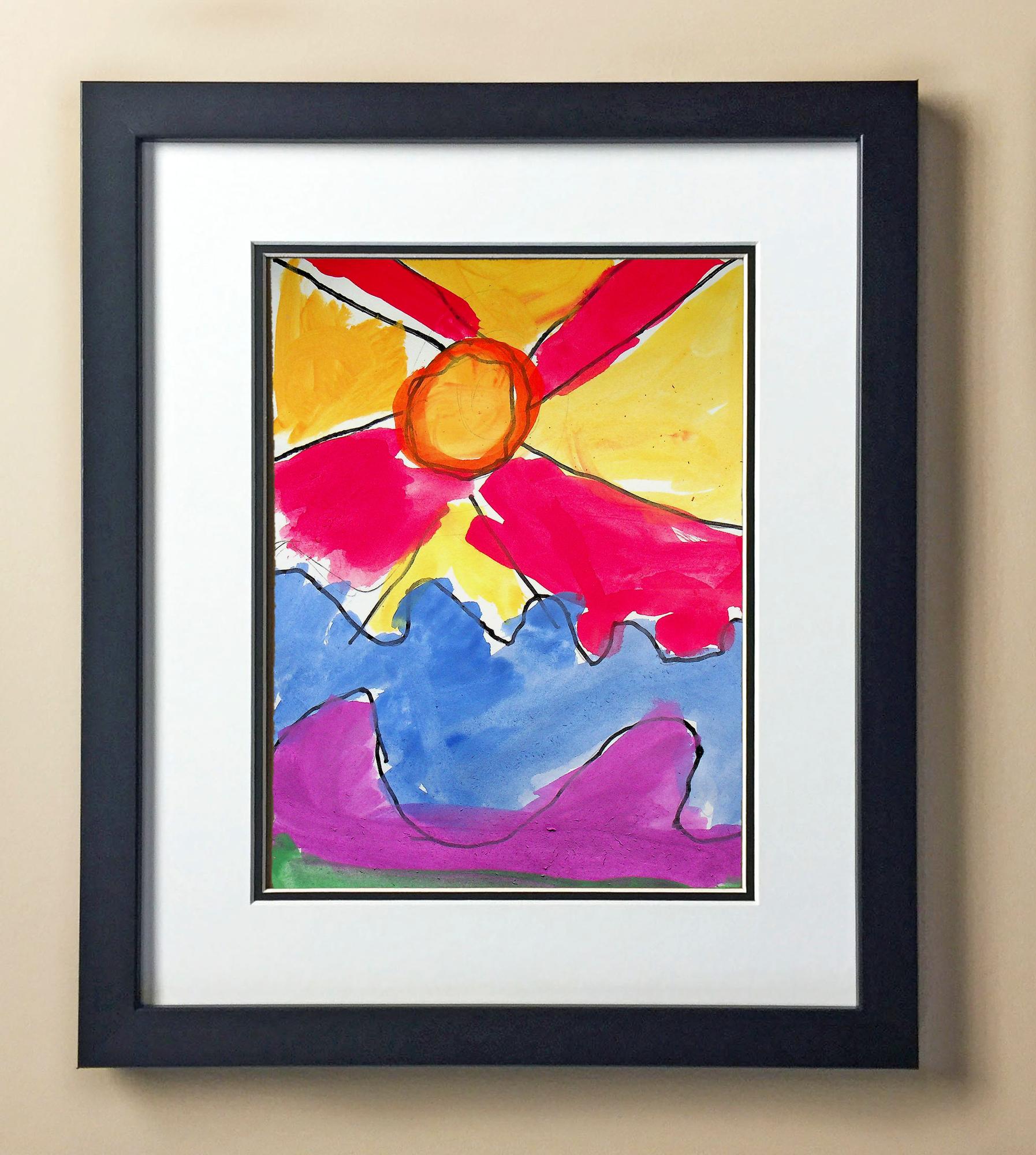 Included with the purchase is the Students Artwork, Frame, double matboard, shatter proof plexiglass, and a ready to hang backerboard with turnbuttons