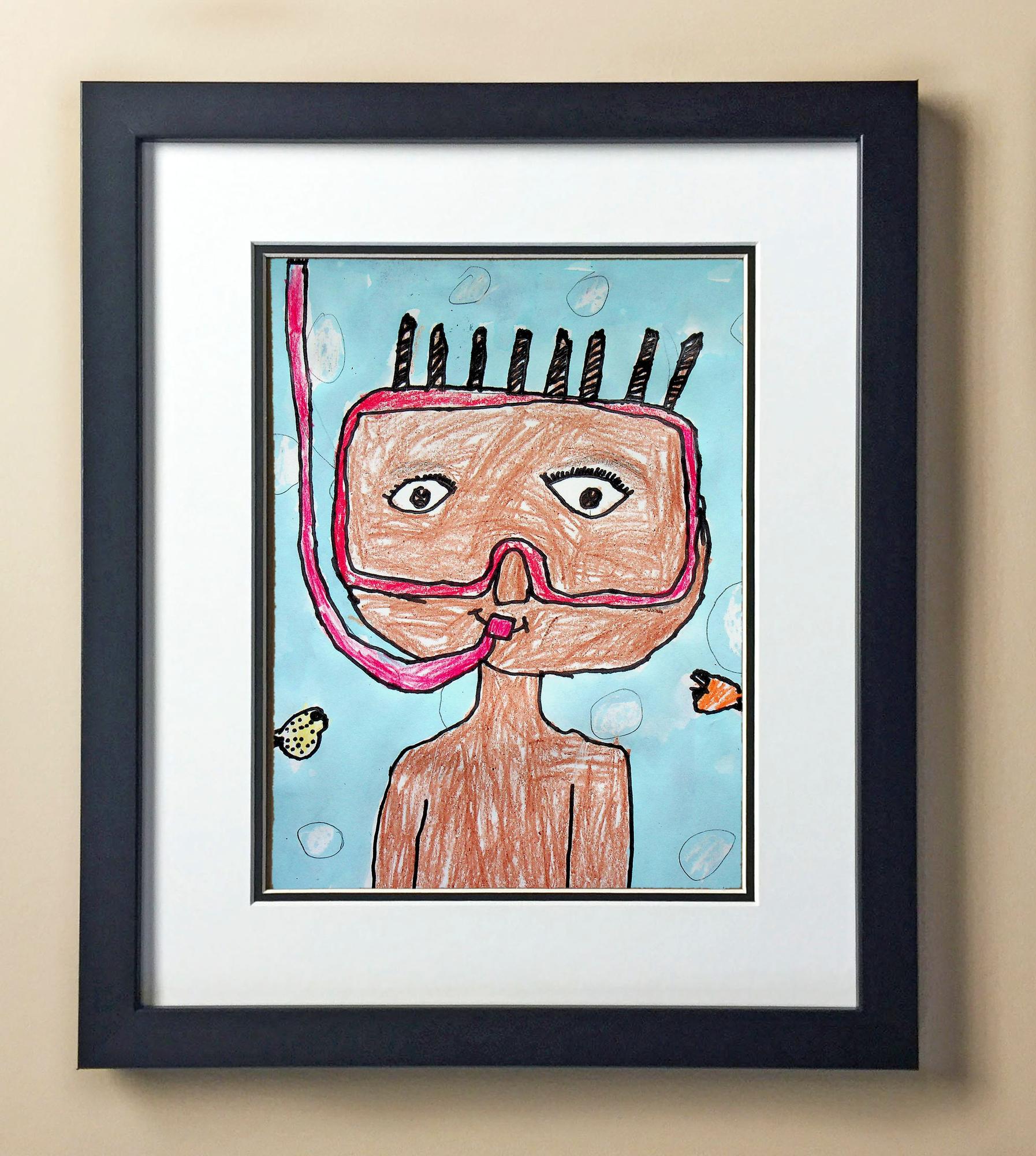 Included with the purchase is the Students Artwork, Frame, double matboard, shatter proof plexiglass, and a ready to hang backerboard with turnbuttons